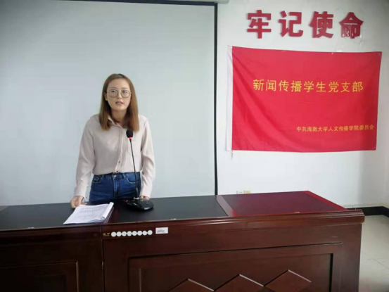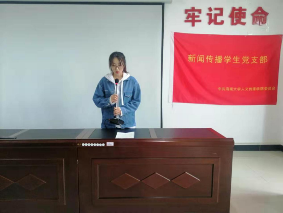 海南大学人文传播学院新闻传播学生党支部于12月10日下午3点30分,在社科楼B-719召开了新闻传播学生党支部预备党员接收大会。会议由党支部书记李洁主持。