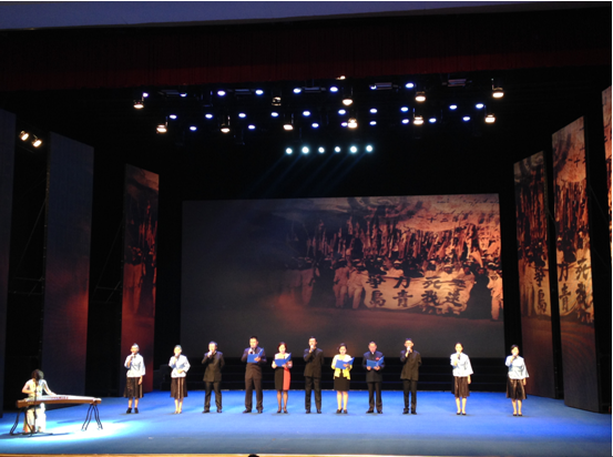 2015年5月7日晚8时,由海南省作家协会和海南大学联合主办,海南大学人文传播学院和海南省颂读学会共同承办的“中国梦?海南美名家名篇暨《海南岛:阳光与水的叙事》朗诵会”在海南大学思源大礼堂隆重开幕。出席本次晚会的领导和嘉宾有海南大学党委副书记陈封椿教授,海南省作家协会秘书长、著名军旅作家梅国云先生,海南大学人文传播学院院长刘复生教授,海南大学人文传播学院党委书记王兆庆教授,海南省颂读学会秘书长巨东先生,海南省颂读学会副秘书长毕然女士,海南省委宣传部文艺处处长彭玉斌博士,以及相关单位的主要负责人。晚会由海南广播电视总台海南新闻联播节目主持人罗哲和海南大学人文传播学院濮钰晴同学合作主持。 本场朗诵会共分为“诗意中国”、“苦难再生”、“民族复兴”三个篇章。晚会在人文传播学院选送的《诗意中国》中正式拉开序幕,首篇“诗意中国”环节选取了中国古典文化中传颂不朽的宋代诗人苏轼的《水调歌头?明月几时有》、唐代诗人张若虚的《春江花月夜》和明代作家张岱的《湖心亭看雪》等五篇诗文名作,朗诵慷慨激昂或婉约凄美、跌宕起伏,流露出绵绵深情,似与物、与景融为一体,幻化成丝丝细雨,敲打着聆听者的心扉。第二篇“苦难再生”章节选取戴望舒《我用残损的手掌》、艾青《太阳》、韩少功《万泉河雨季》、毛泽东《沁园春?雪》等五篇现代诗文,诵读者以专业的朗诵技巧与多年的播音功底,结合对诗歌美的领悟,饱含深情,感人至深。黄晓宁老师的细而不腻、罗大明老师的铿锵激越以及邢月老师的温厚柔曼,让听者也为之动容。朗诵会第三篇为“民族复兴”篇章,选取了食指《相信未来》、唐昕《中国最高爱情方式》、张承志《海上的棋盘》等六篇诗文,听众们在“用美丽的雪花写下:相信未来”的语句中燃起希望,在“爱了六十年没说过一句话”的诗句中体悟“中国最高形式的爱情”。第三篇章以梁启超的《少年中国说》收场,全体诵读者气势慷慨、意气风发,朗诵会在“少年强则中国强”铿锵之音的回荡中完美落幕。 此次朗诵会诵读者为海南省朗诵家罗大明,主任播音员、国家级普通话水平测试员邢月,海南软件职业技术学院教师、主持人黄晓宁,海南广播电视总台海南新闻联播节目主持人罗哲,海南新闻主播王一宁以及海南大学人文传播学院学生,全校800多名师生聆听观看了本场朗诵会。 杨佩佩 索金炜