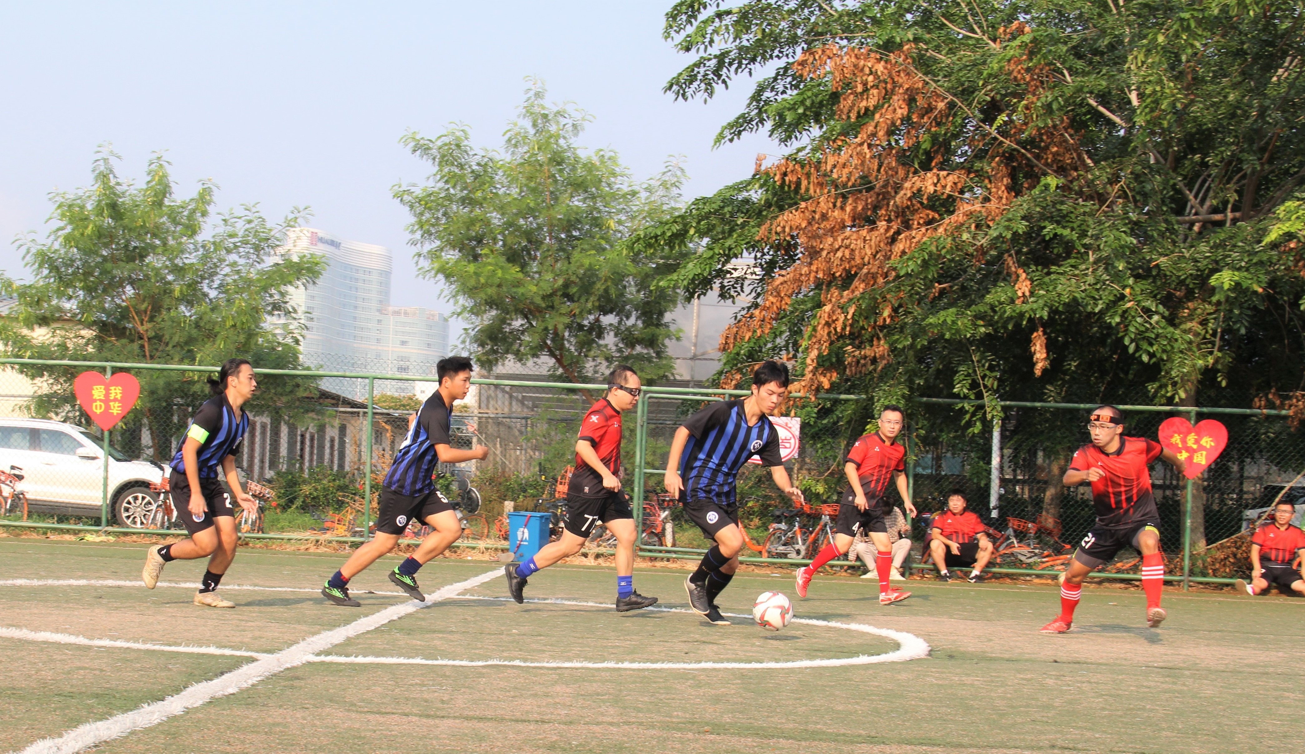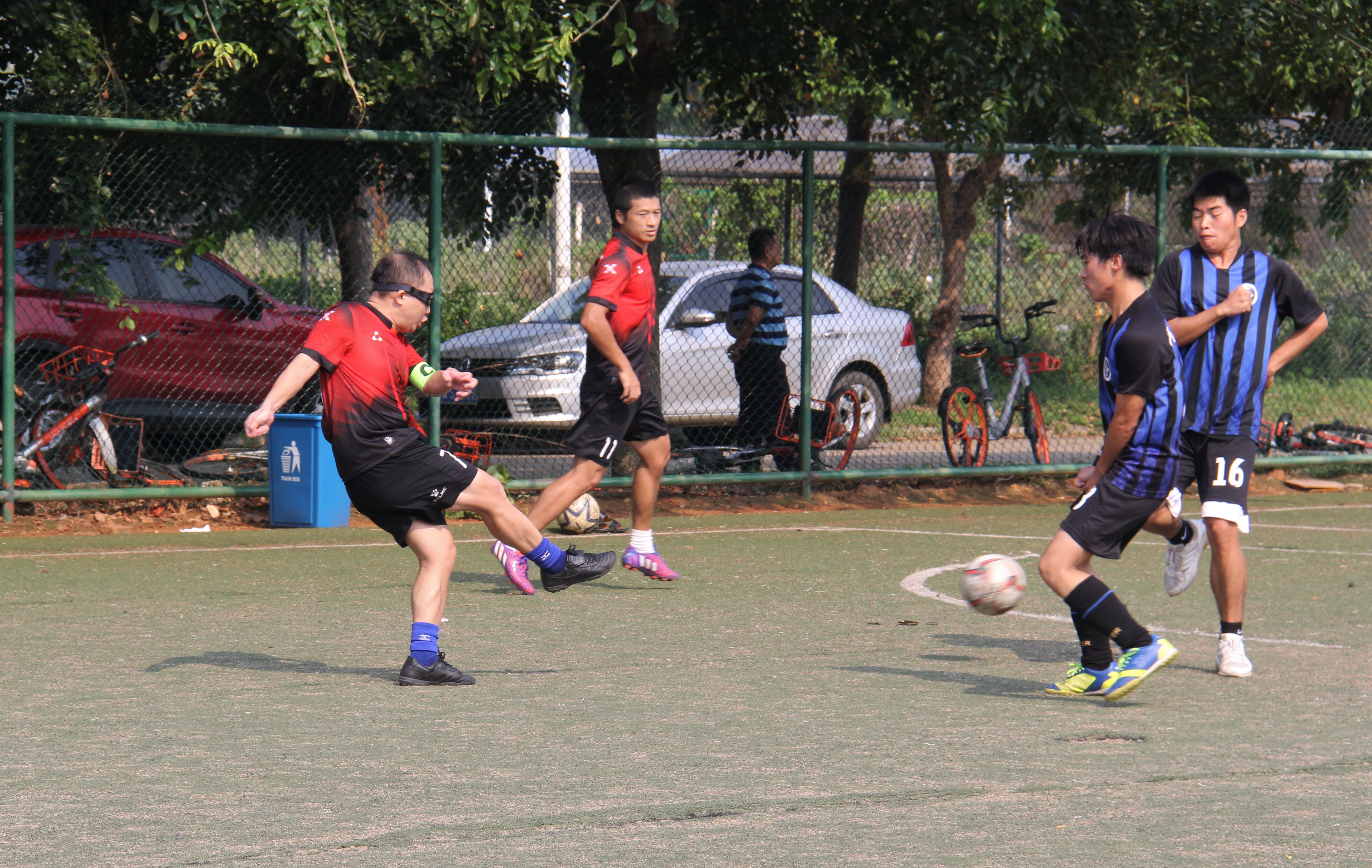 比赛哨响,教工队率先开球。开场第9分钟,教工队11号球员林佳老师接队友传球,顺势摆脱防守队员,形成单刀将球打进,教工队1-0学生队。上半场14分钟,教工队队长王春嵩老师开出角球,足球打在对方队长刘宏身上,足球变线入网,守门员付鑫反应不及,教工队2-0学生队。