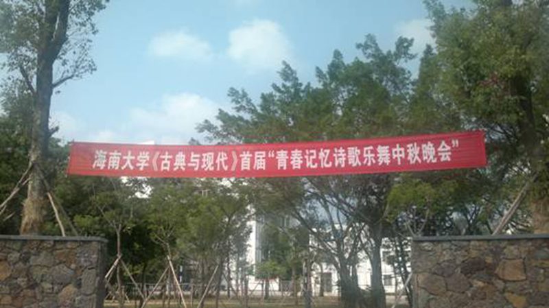 ——记海南大学《古典与现代》“青春记忆”诗歌乐舞中秋晚会 “明月几时有,把酒问青天。不知天上宫阙,…… 2012年9月30日20时30分,海南大学《古典与现代》主编,人文传播学院杨国良教授引领大家吟诵千古绝唱《水调歌头》拉开了《古典与现代》“青春记忆诗歌乐舞中秋晚会”的序幕。 秉承《古典与现代》(海南大学主办)“建立一所没有围墙的大学”的理念,晚会地点选在9月29日刚刚启用的海南大学“青春记忆广场”,在开阔的室外举办中秋晚会恰恰是对此理念的呼应。晚会名称中的“青春记忆”意为唤醒中老年朋友沉睡多年的记忆;为年轻朋友留下终生难忘的回忆。晚会宗旨为:“欲拨俗世之迷雾,寻心灵之本真;追往日之记忆,享难忘之今夕。于喧嚣现世中,借中秋明月,寄梦于碧海青天。