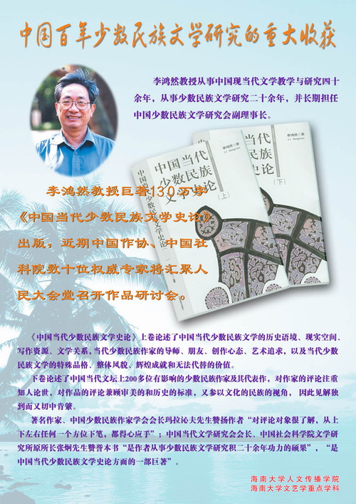 中国百年少数民族文化研究的重大收获——李鸿然教授巨著《中国当代少数民族文学史论》近期出版并将于人民大会堂召开作品研讨会。//www.lolxz.net