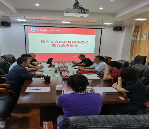 会议第三环节为交流座谈,从教师能力提升、学生培养等方面双方进行了交谈。周立文表示将尽己所能为学院学科建设、人才培养等方面作出贡献,将搭建起光明日报和海南大学人文传播学院的合作交流平台。