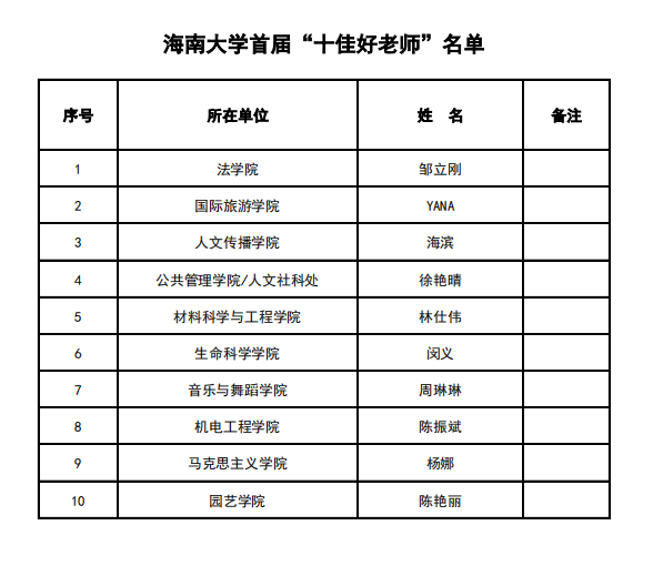 人文传播学院海滨教授荣获海南大学首届“十佳好老师”荣誉称号!