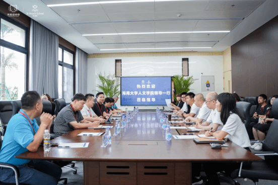 杨元广一行走访海南英雅盛彼德学校,与海南英雅盛彼德学校董事会主席蔡浩然等校方代表进行深入座谈,了解海南英雅盛彼德学校的发展建设及未来规划,在深入探讨的基础上双方初步达成了共建学生实习实践基地、毕业生就业推荐等项目,深化高等教育与中小学教育的衔接合作,共同推动产学研深度融合,现场向英雅盛彼德学校作毕业生推荐并进行面试交流。