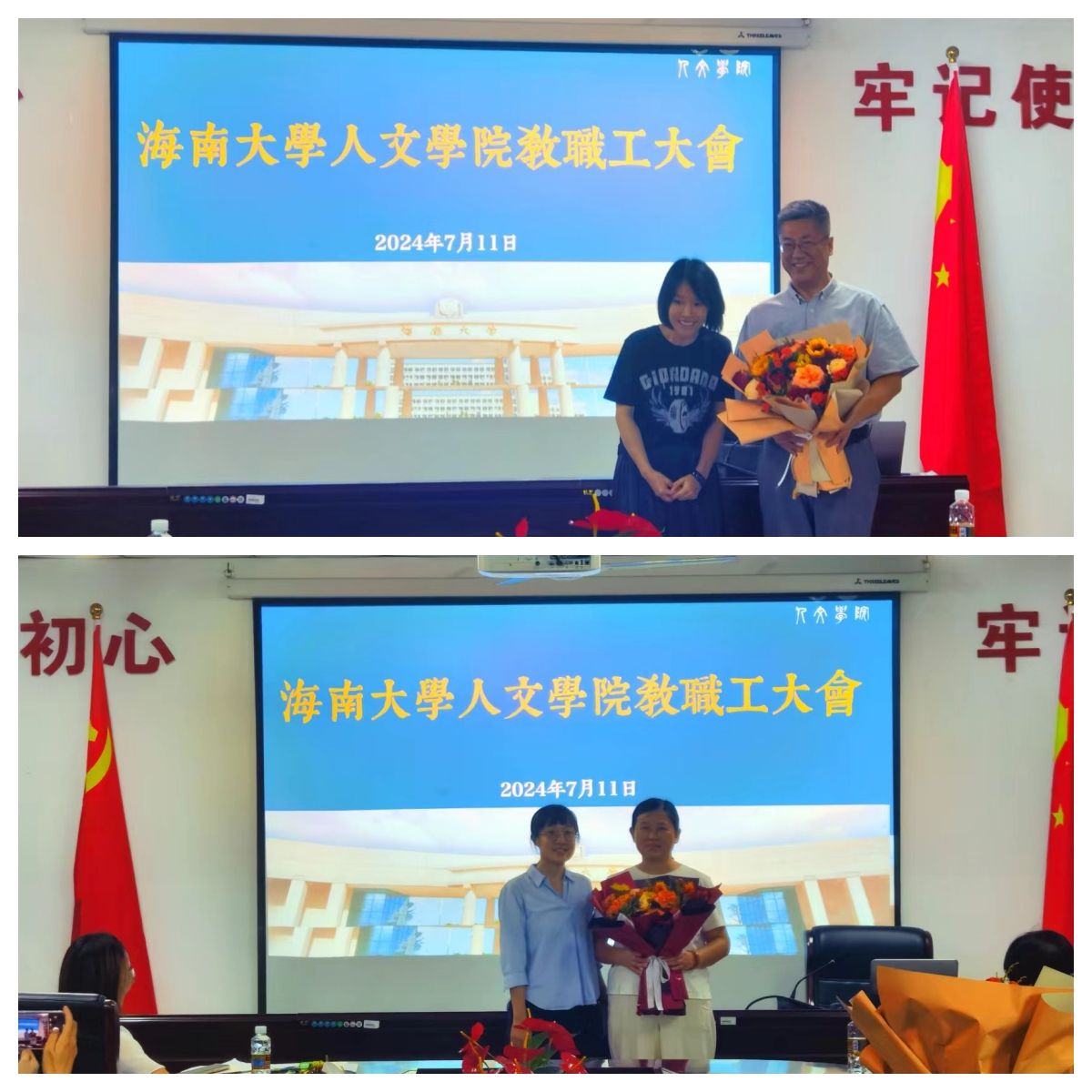 会议前,举行新入职教师欢迎仪式,介绍教师及献送鲜花。