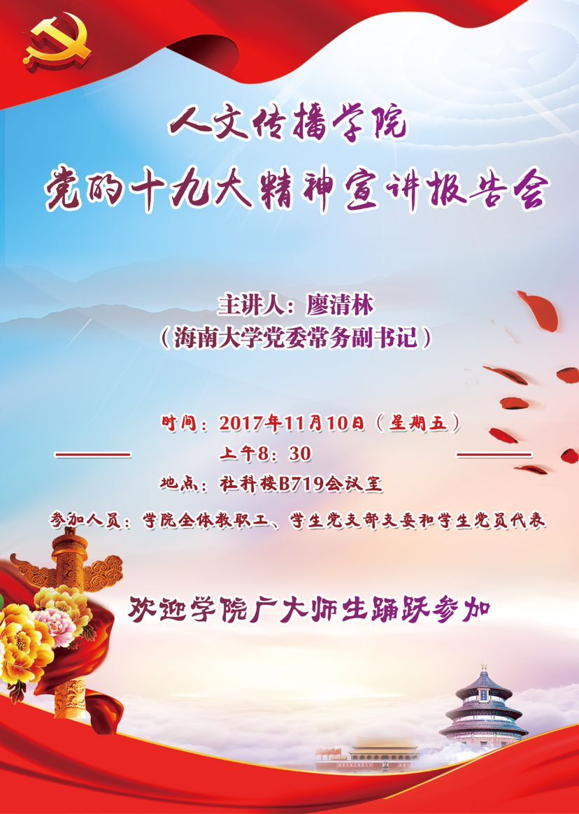 党的十九大精神宣讲报告会——海南大学党委常委副书记廖清林主讲