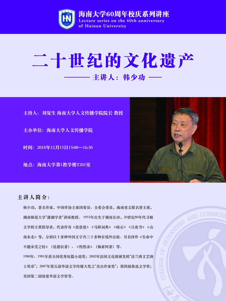 海南大学60周年校庆系列讲座之五——二十世纪的文学遗产