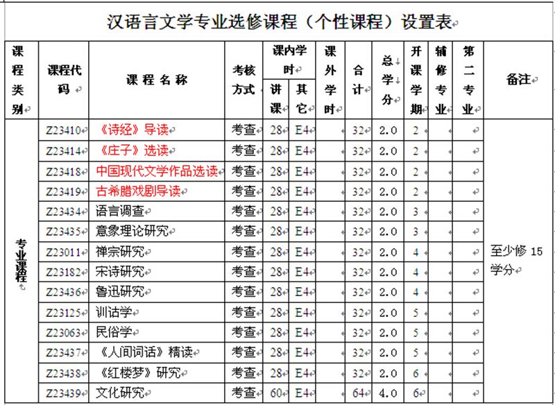 2013级各专业个性课程通选,学生可在各专业选修个性课程,学分有效。在2013级第4学期(2015.3-2015.7)将开设六门“个性课程”。因各专业第4学期公共课和必修课较多,故限定各专业学生选课数量上限为2门(中文专业学生已修8-11个学分,可以不选)。第5-7学期将开设较多个性课程(尤其戏影专业),届时同学们可根据需要选择适合自己的课程。(各专业课程体系学分分配情况及“个性课程”选择建议参见本网站《人文传播学院2013级各专业课程体系学分分配表》及说明。) 2013级第4学期将开设的个性课程详细情况为: