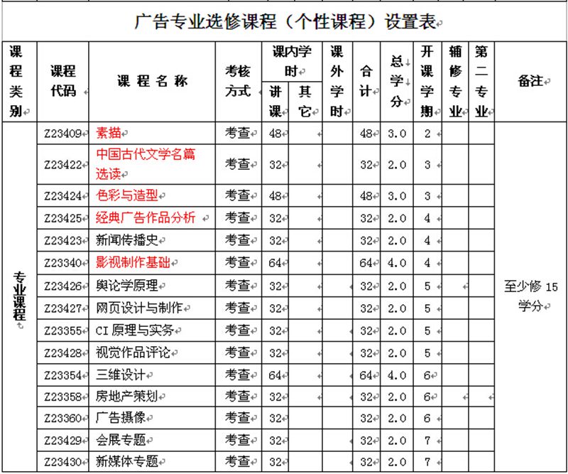 选课人数上限:50人。(注:限广告专业学生选修。)6、《经典广告作品分析》,32学时,授课教师:何晶娇。