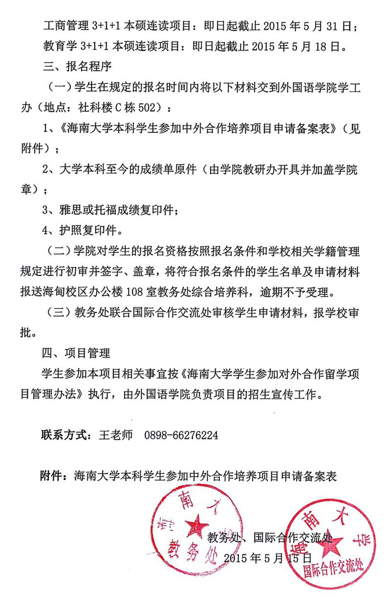附件一:海南大学本科学生参加中外合作培养项目申请备案表.