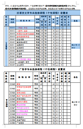 另外,“个性课程”修满15学分以上即可满足毕业所需选修课学分要求。请同学们参照附件中《人文传播学院2014级各专业课程体系学分分配表》做好选课计划,合理选择各学期课程。