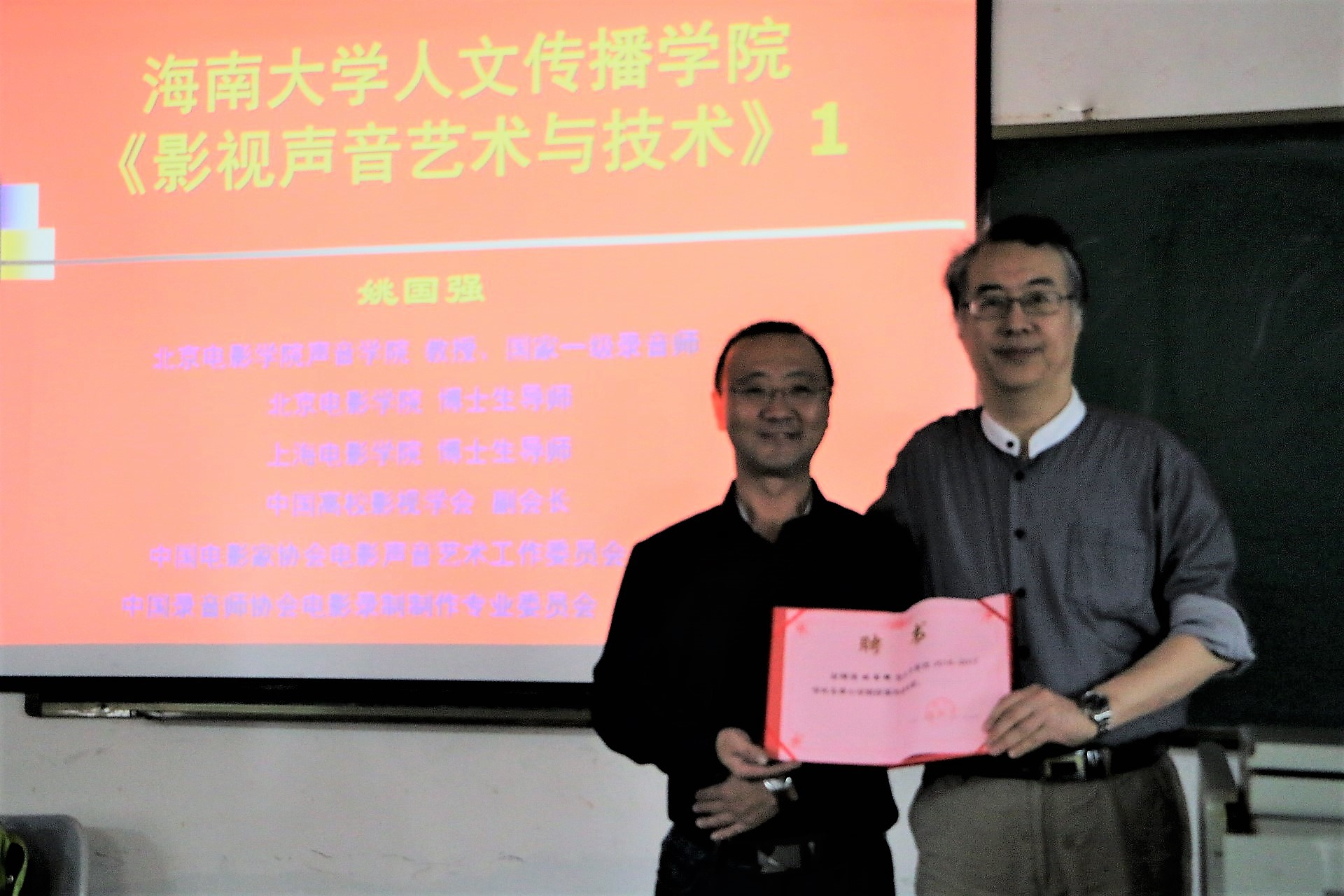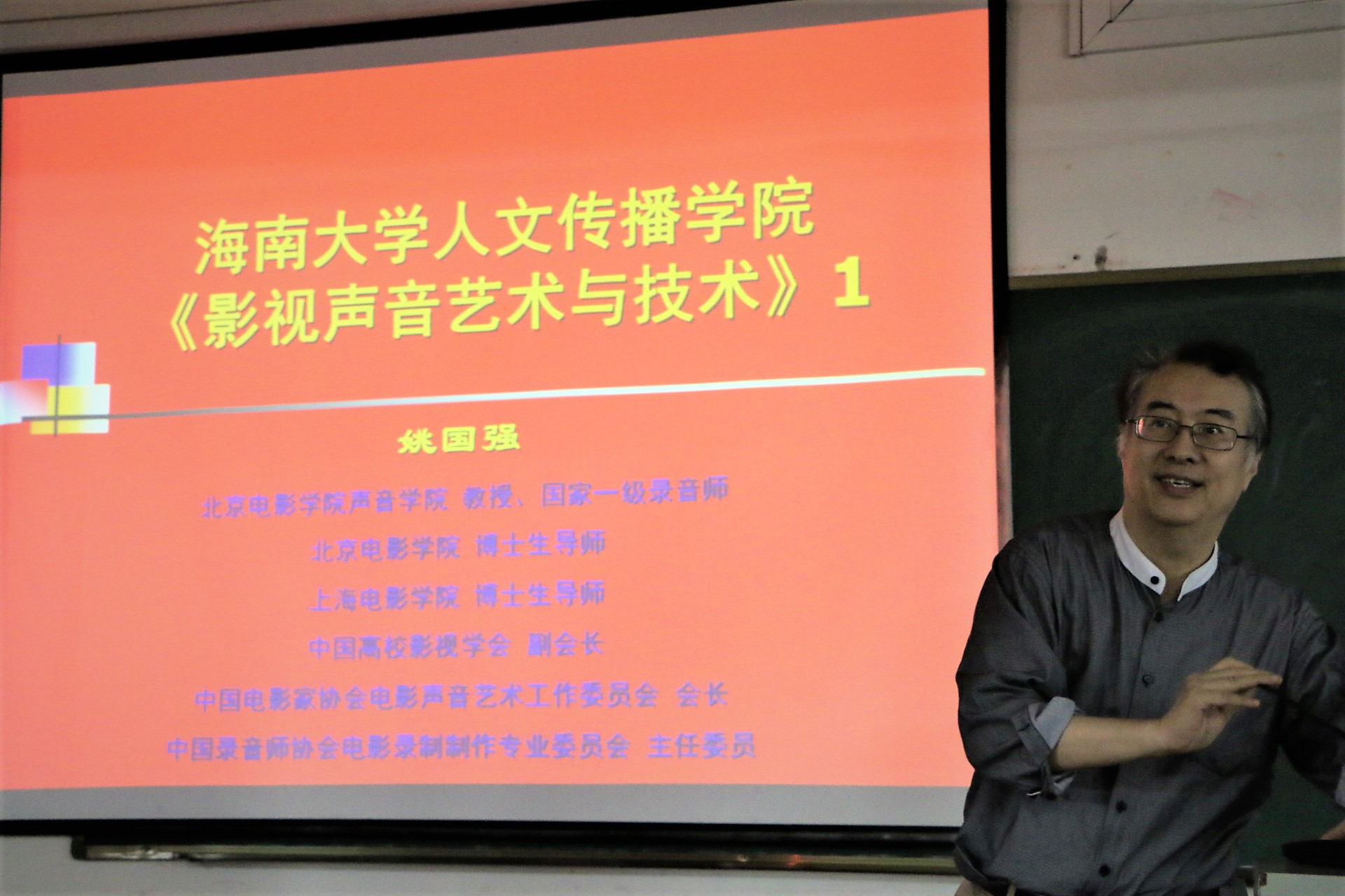 2017年1月3日上午,海南大学人文传播学院2017年冬季小学期戏剧影视文学专业《影视声音艺术与技术》课程在2号教学楼110教室开讲。北京电影学院博士生导师、国家一级录音师姚国强教授应邀为lol下注