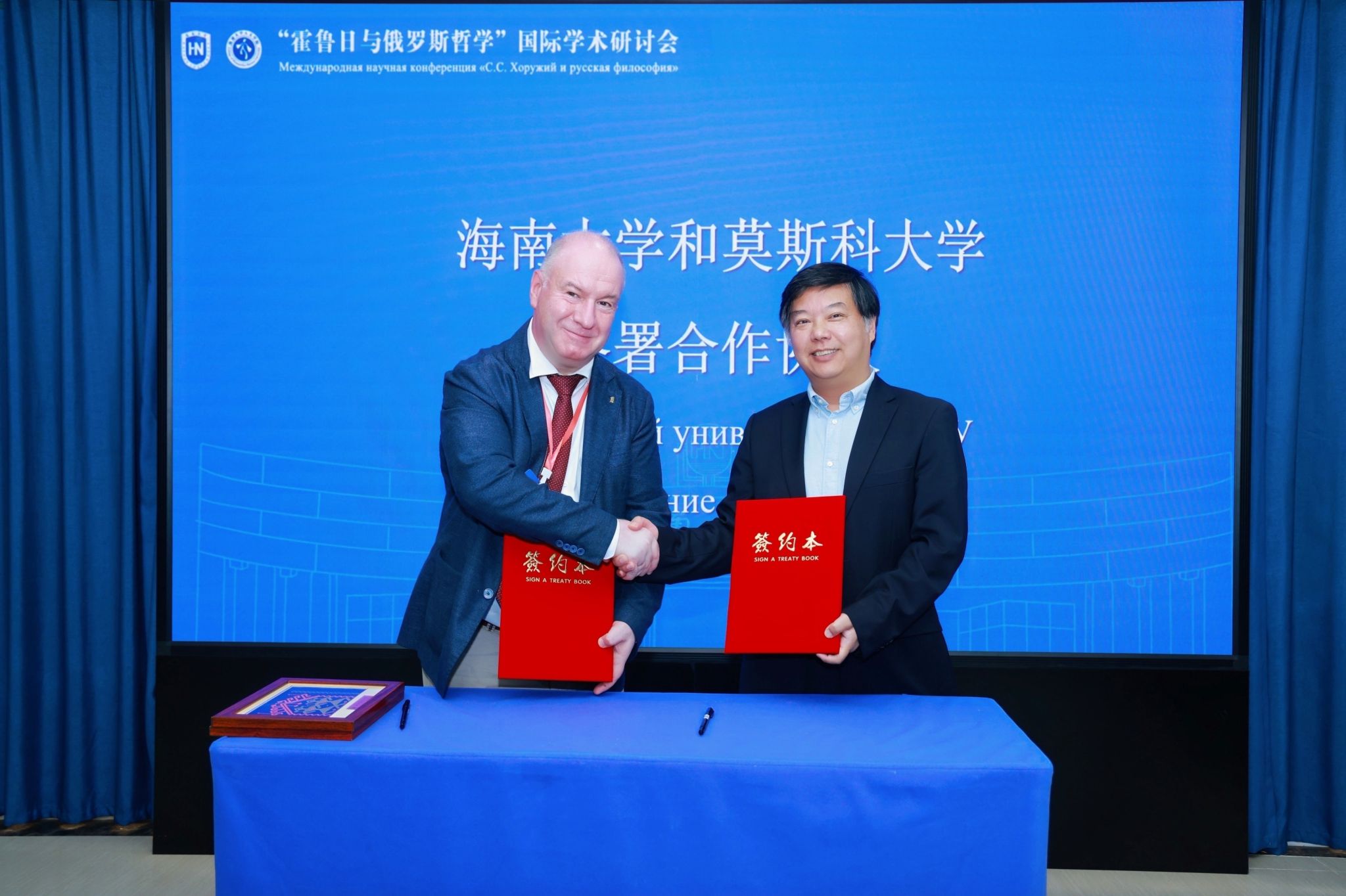 开幕式上,海南大学与莫斯科国立罗曼诺索夫大学、俄罗斯高等经济大学分别签署合作框架协议,共同致力于中俄人文与哲学交流互鉴。