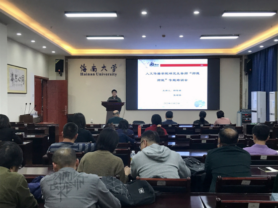 为了进一步提高研究生导师的师德师能建设,全面落实研究生导师立德树人的职责和要求,2021年11月23日,海南大学人文传播学院在社科楼B112室举办了研究生导师“师德师能”专题培训会。学院全体领导班子、研究生导师、授课教师、新引进教师参加了本次专题培训会。本次培训会由“师德”培训和“师能”培训两个部分组成。