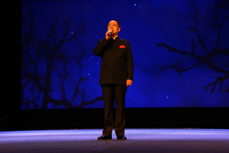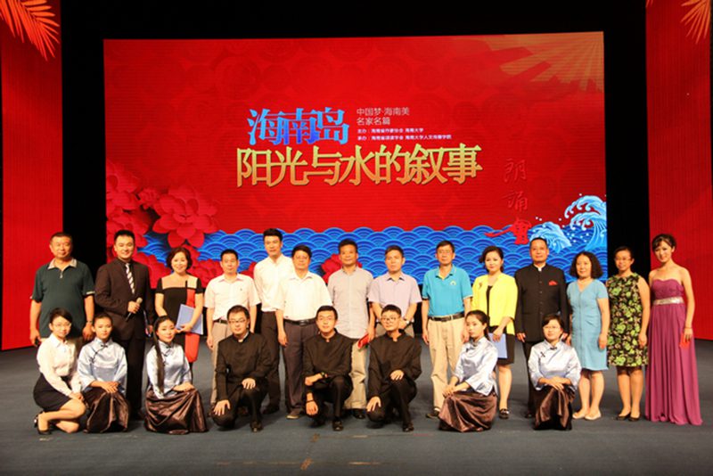 2015年5月7日晚8时,由海南省作家协会和海南大学联合主办,海南大学人文传播学院和海南省颂读学会共同承办的“中国梦?海南美名家名篇暨《海南岛:阳光与水的叙事》朗诵会”在海南大学思源大礼堂隆重开幕。出席本次晚会的领导和嘉宾有海南大学党委副书记陈封椿教授,海南省作家协会秘书长、著名军旅作家梅国云先生,海南大学人文传播学院院长刘复生教授,海南大学人文传播学院党委书记王兆庆教授,海南省颂读学会秘书长巨东先生,海南省颂读学会副秘书长毕然女士,海南省委宣传部文艺处处长彭玉斌博士,以及相关单位的主要负责人。晚会由海南广播电视总台海南新闻联播节目主持人罗哲和海南大学人文传播学院濮钰晴同学合作主持。 本场朗诵会共分为“诗意中国”、“苦难再生”、“民族复兴”三个篇章。晚会在人文传播学院选送的《诗意中国》中正式拉开序幕,首篇“诗意中国”环节选取了中国古典文化中传颂不朽的宋代诗人苏轼的《水调歌头?明月几时有》、唐代诗人张若虚的《春江花月夜》和明代作家张岱的《湖心亭看雪》等五篇诗文名作,朗诵慷慨激昂或婉约凄美、跌宕起伏,流露出绵绵深情,似与物、与景融为一体,幻化成丝丝细雨,敲打着聆听者的心扉。第二篇“苦难再生”章节选取戴望舒《我用残损的手掌》、艾青《太阳》、韩少功《万泉河雨季》、毛泽东《沁园春?雪》等五篇现代诗文,诵读者以专业的朗诵技巧与多年的播音功底,结合对诗歌美的领悟,饱含深情,感人至深。黄晓宁老师的细而不腻、罗大明老师的铿锵激越以及邢月老师的温厚柔曼,让听者也为之动容。朗诵会第三篇为“民族复兴”篇章,选取了食指《相信未来》、唐昕《中国最高爱情方式》、张承志《海上的棋盘》等六篇诗文,听众们在“用美丽的雪花写下:相信未来”的语句中燃起希望,在“爱了六十年没说过一句话”的诗句中体悟“中国最高形式的爱情”。第三篇章以梁启超的《少年中国说》收场,全体诵读者气势慷慨、意气风发,朗诵会在“少年强则中国强”铿锵之音的回荡中完美落幕。 此次朗诵会诵读者为海南省朗诵家罗大明,主任播音员、国家级普通话水平测试员邢月,海南软件职业技术学院教师、主持人黄晓宁,海南广播电视总台海南新闻联播节目主持人罗哲,海南新闻主播王一宁以及海南大学人文传播学院学生,全校800多名师生聆听观看了本场朗诵会。 杨佩佩 索金炜