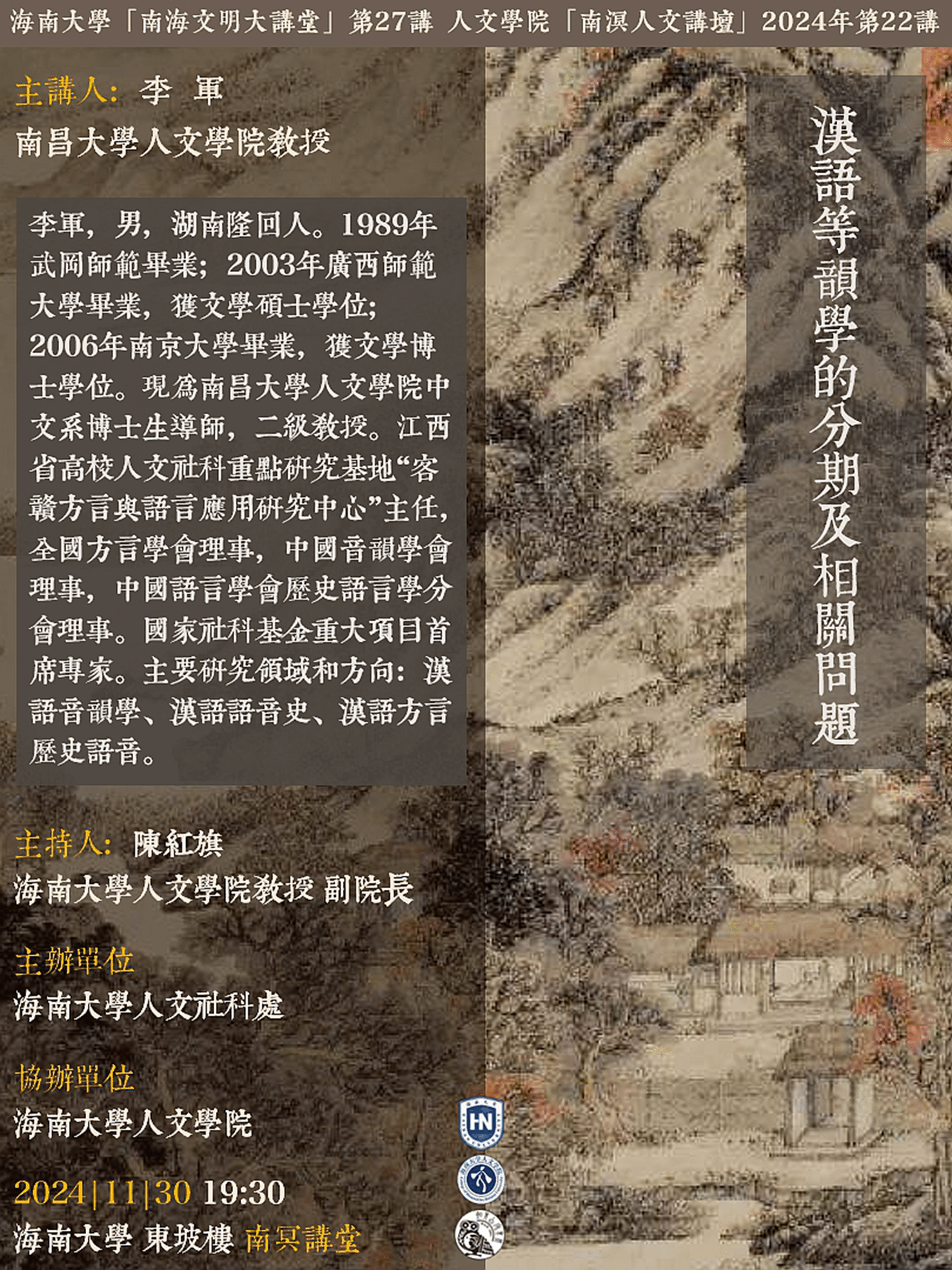 【学术预告】海南大学“南海文明大讲堂”第27讲 lol下注 “南溟人文讲坛”2024年第22讲