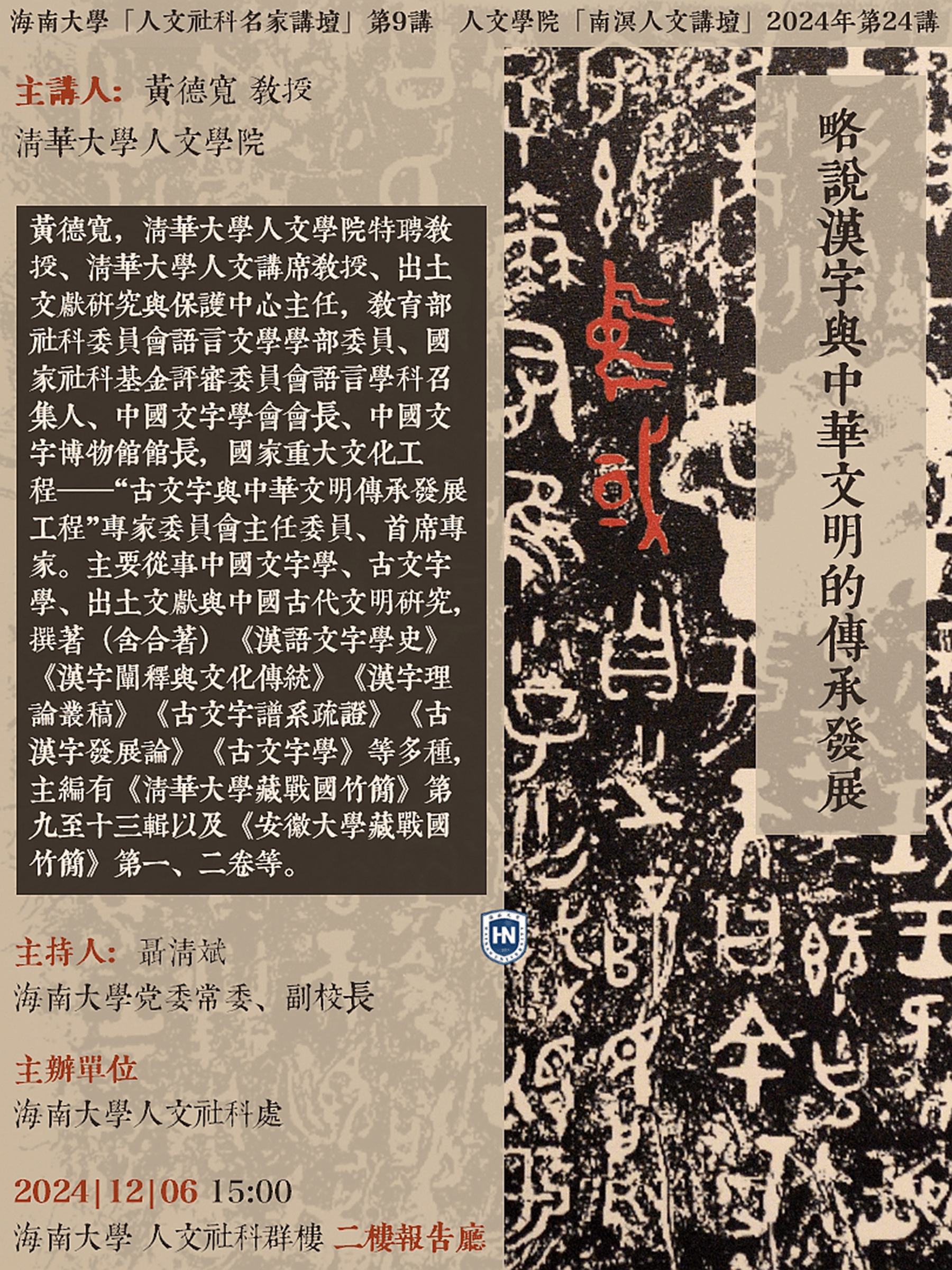 【学术预告】海南大学“人文社科名家讲坛”第9讲、lol下注 “南溟人文讲坛”2024年第24讲
