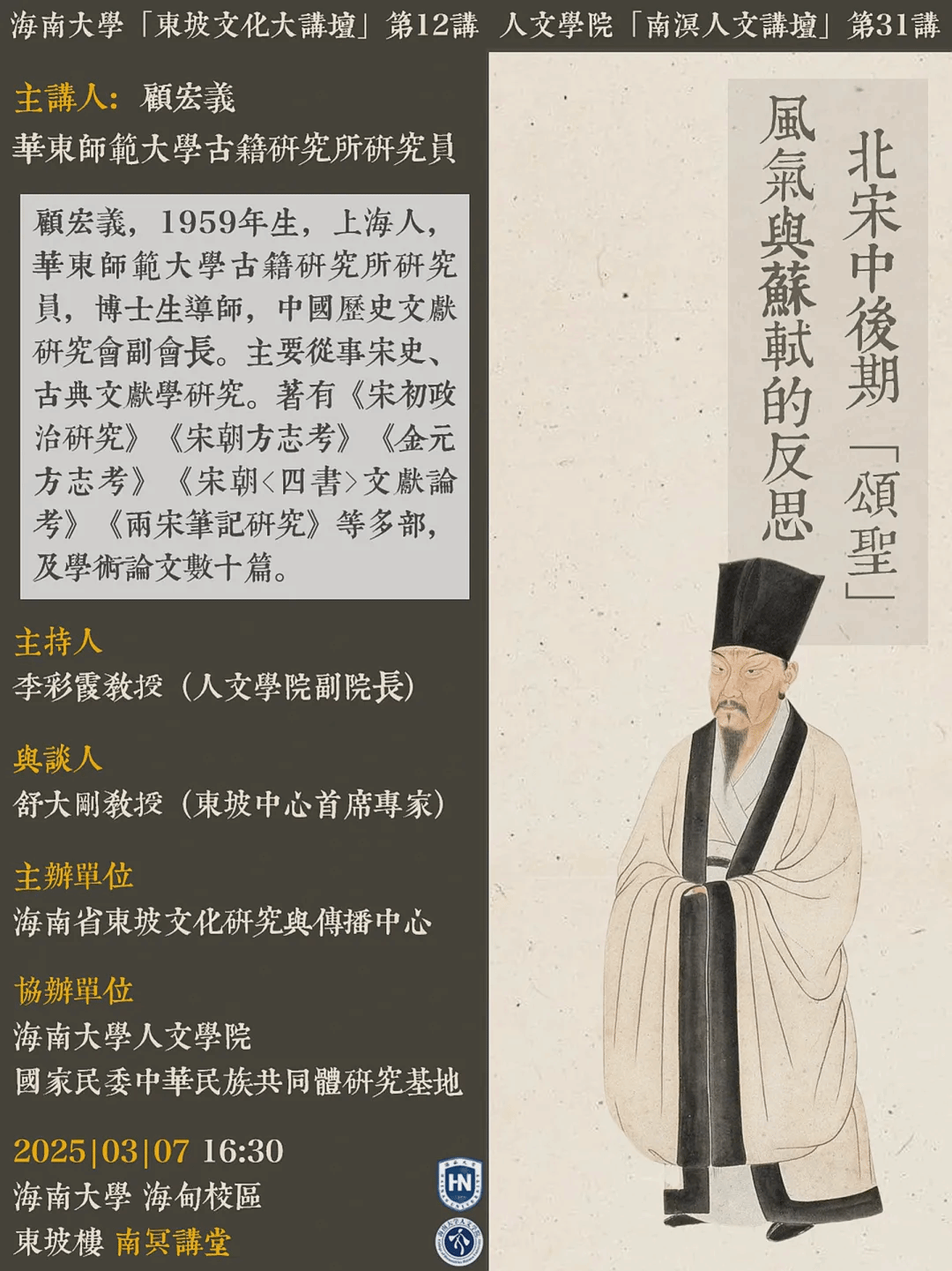 【学术预告】海南大学东坡文化大讲坛第12讲、lol下注 南溟人文讲坛第31讲