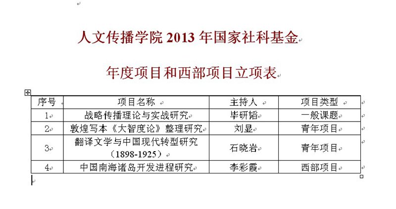人文传播学院2013年国家社科基金年度项目和西部项目立项表