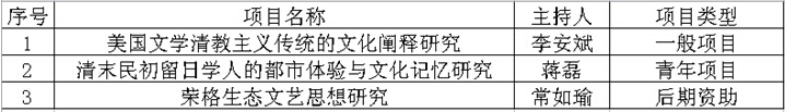 有1项课题获得第三批国家社科基金后期资助(《荣格生态文艺思想研究》常如瑜)。