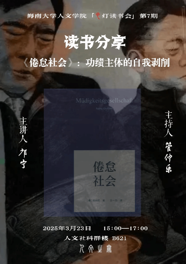 哲学系邝宁博士,主讲题目为《<倦怠社会>:功绩主体的自我剥削》。lol下注