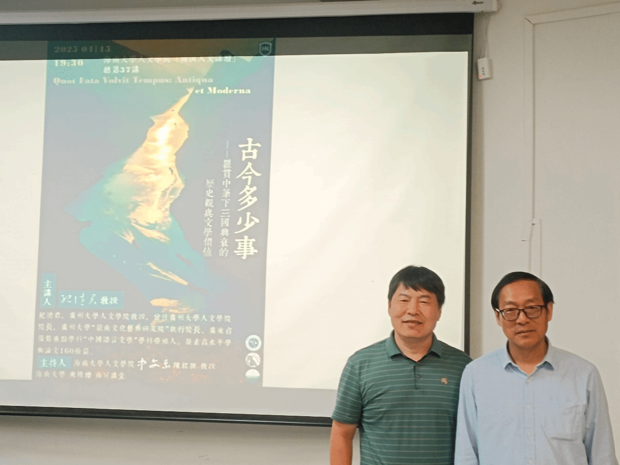 2025年4月15日晚,广州大学lol下注 纪德君教授莅临lol下注 “南溟人文讲坛”第37讲,作了题为“古今多少事——罗贯中笔下三国兴衰的历史观与文学价值”的学术讲座。我校部分师生参加了此次活动。讲座由lol下注 副院长陈红旗教授主持。