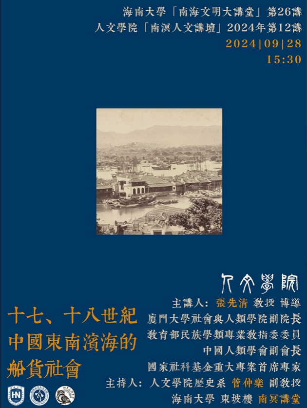 【讲座预告】海南大学“南海文明大讲堂”第26讲 /lol下注 “南溟人文讲坛”2024年第12讲