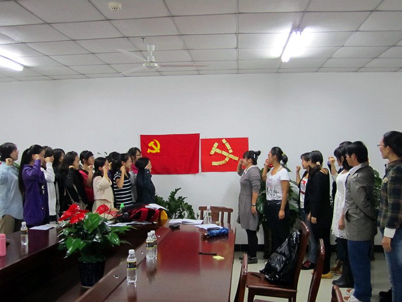 全体学生党员干部、以及各学生组织中深入开展学习贯彻党的十八大精神主题系列活动的具体要求,海南大学人文传播学院研究生党支部于11月26日晚,在学院会议室组织开展了关于学习十八大精神的座谈会,研究生党支部书记白多主持会议。 借此学习党的十八大精神的机会,党支部通过表决的方式发展接收了新一批研究生预备党员和正式党员,新发展的预备党员和正式党员结合十八大精神和自身情况作了积极的思想汇报。 在支部书记白多的引导下,各位研究生党员针对党的十八大报告中的热点问题,结合高校教育体制等问题,依次发表了自己的看法。整个会场气氛热烈,大家围绕自己的学术科研、工作生活等方面的问题进行了较为积极和深入的探讨。对学习和生活中遇到的问题和困惑,大家更是热情地提出可能性的意见和有效的解决方法,体现出了研究生团结一致的精神风貌。 为了给党的十八大献上自己的祝福,全体研究生支部党员每人写了一句对党和国家的祝福,贴成党旗的图案,作为献给党的礼物。最后,所有与会党员面对党旗,郑重宣读了入党誓词,重温了入党时的庄严和激动心情,场面温暖感人。