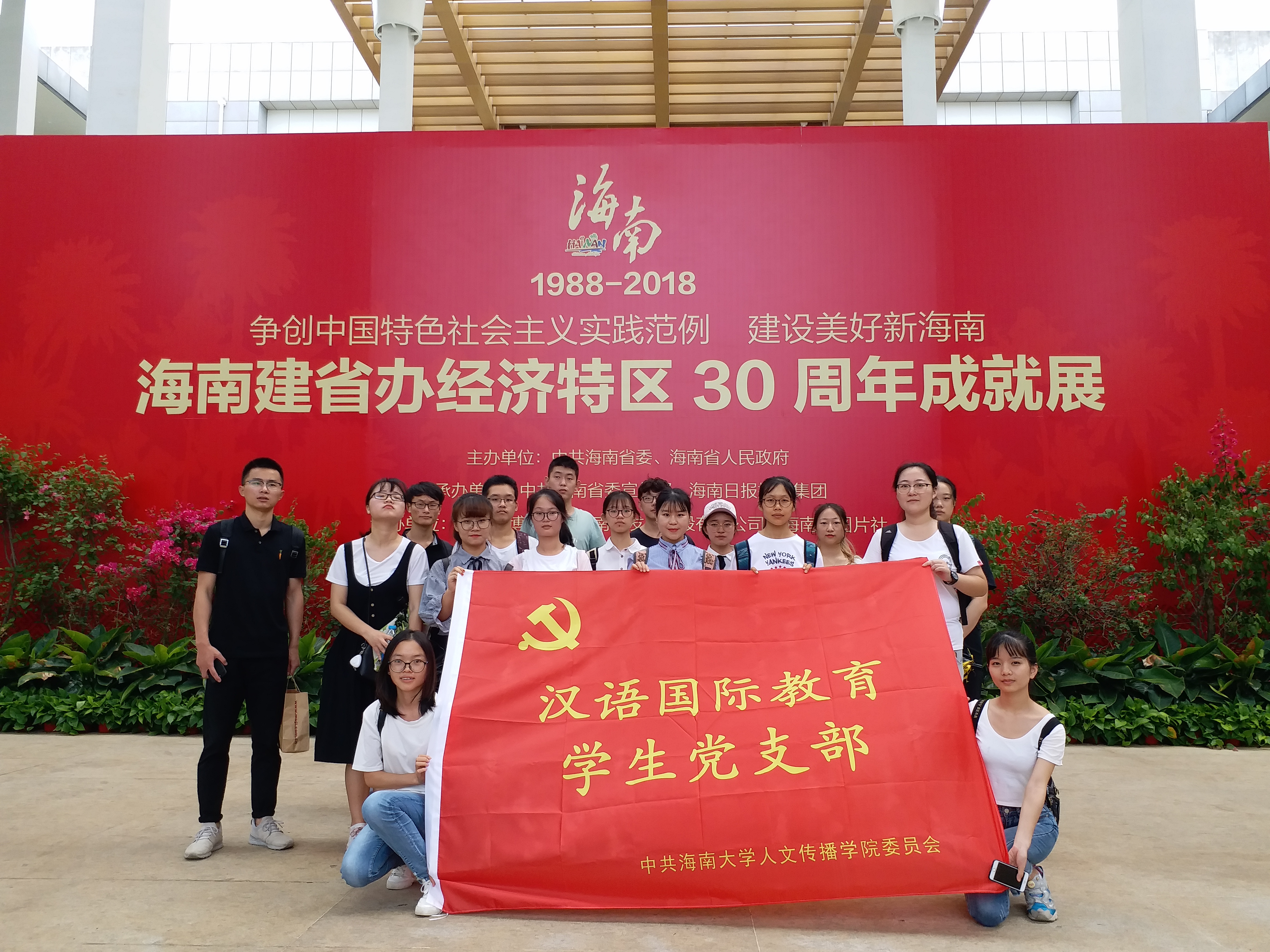 为学习贯彻习近平总书记在海南建省办经济特区30周年大会上的讲话精神,教育青年学生党员学习海南发展历史,5月19日下午,汉语国际教育学生党支部组织党员、入党积极分子成员开展主题党日活动,集体前往海南省博物馆参观“海南建省办经济特区30周年成就展——争创中国特色社会主义实践范例 建设美好新海南”展览,通过直观的展览,带领党员同志学习了解海南建省三十年来在政治、经济、文化等各方面取得的瞩目成就,回顾改革开放40周年来海南前赴后继的发展历程。