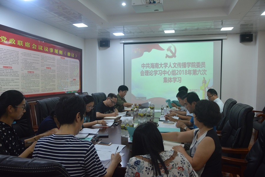 9月27日下午,中共海南大学人文传播学院委员会理论学习中心组在社科楼B615会议室召开第六次集体学习会议。会议由院党委书记华世佳主持,院长刘复生、院党委副书记孙晓媛、副院长石晓岩、张硕果、李彩霞等理论学习中心组成员参加会议。