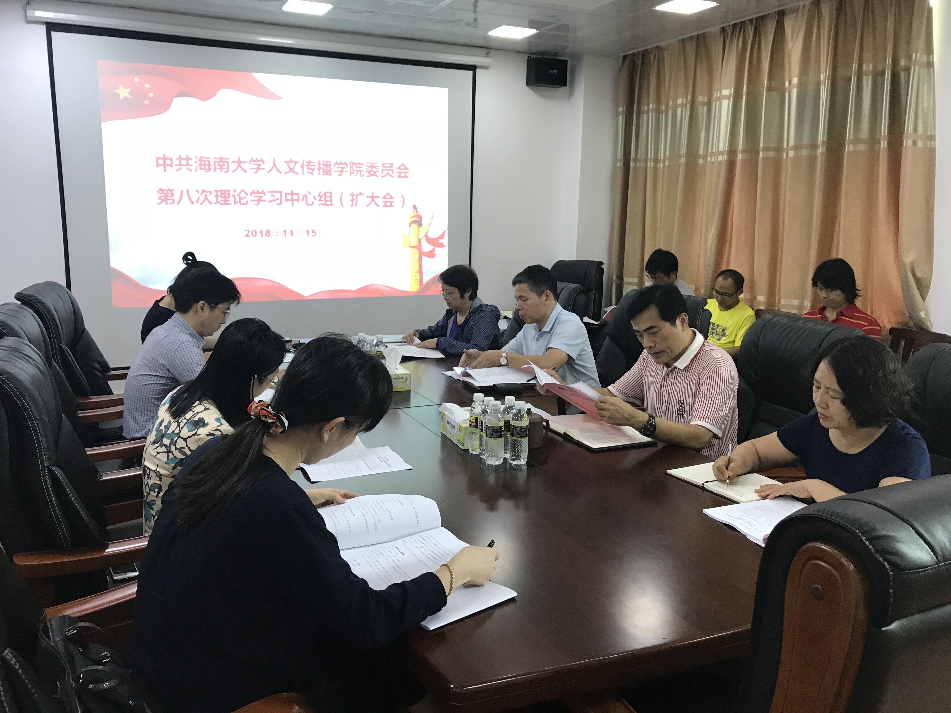 11月15日上午,人文传播学院在社科楼B615会议室召开“中共海南大学人文传播学院委员会理论学习中心组第八次集体学习(扩大)会”。会议由学院党委书记华世佳主持,院长刘复生、学院党委副书记孙晓媛、副院长石晓岩、张硕果、李彩霞,党委委员公衍峰、王春嵩等理论学习中心组成员,系主任、副主任,各党支部书记参加会议。