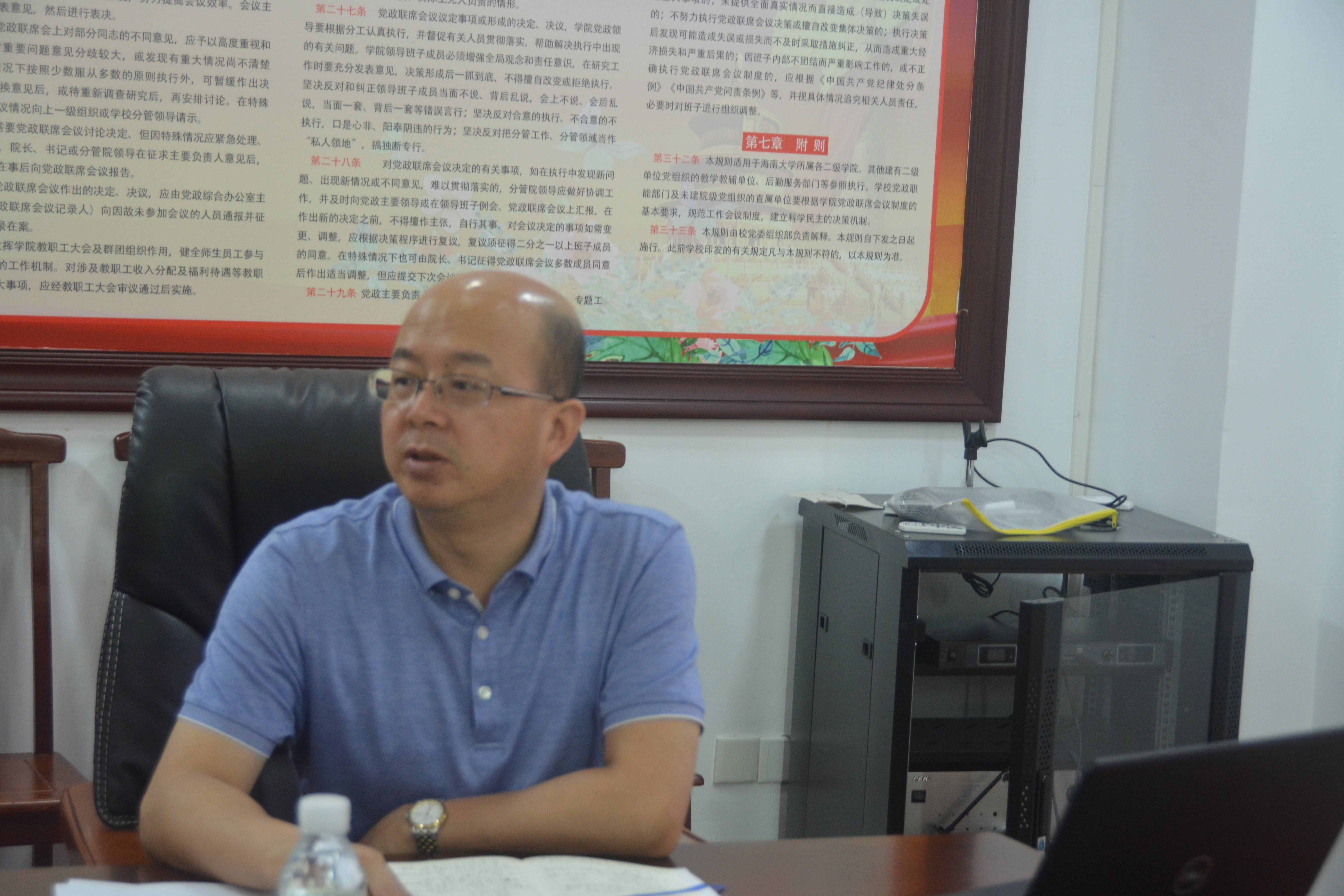 2019年5月28日上午,根据中共中央下发的《中国共产党支部工作条例(试行)》(以下简称《条例》),结合学院党支部工作实际,人文传播学院党委负责人邱华祥同志上了一堂生动的党课,学院党委副书记孙晓媛、党委委员、党支部书记和兼职组织员参加了集中学习。