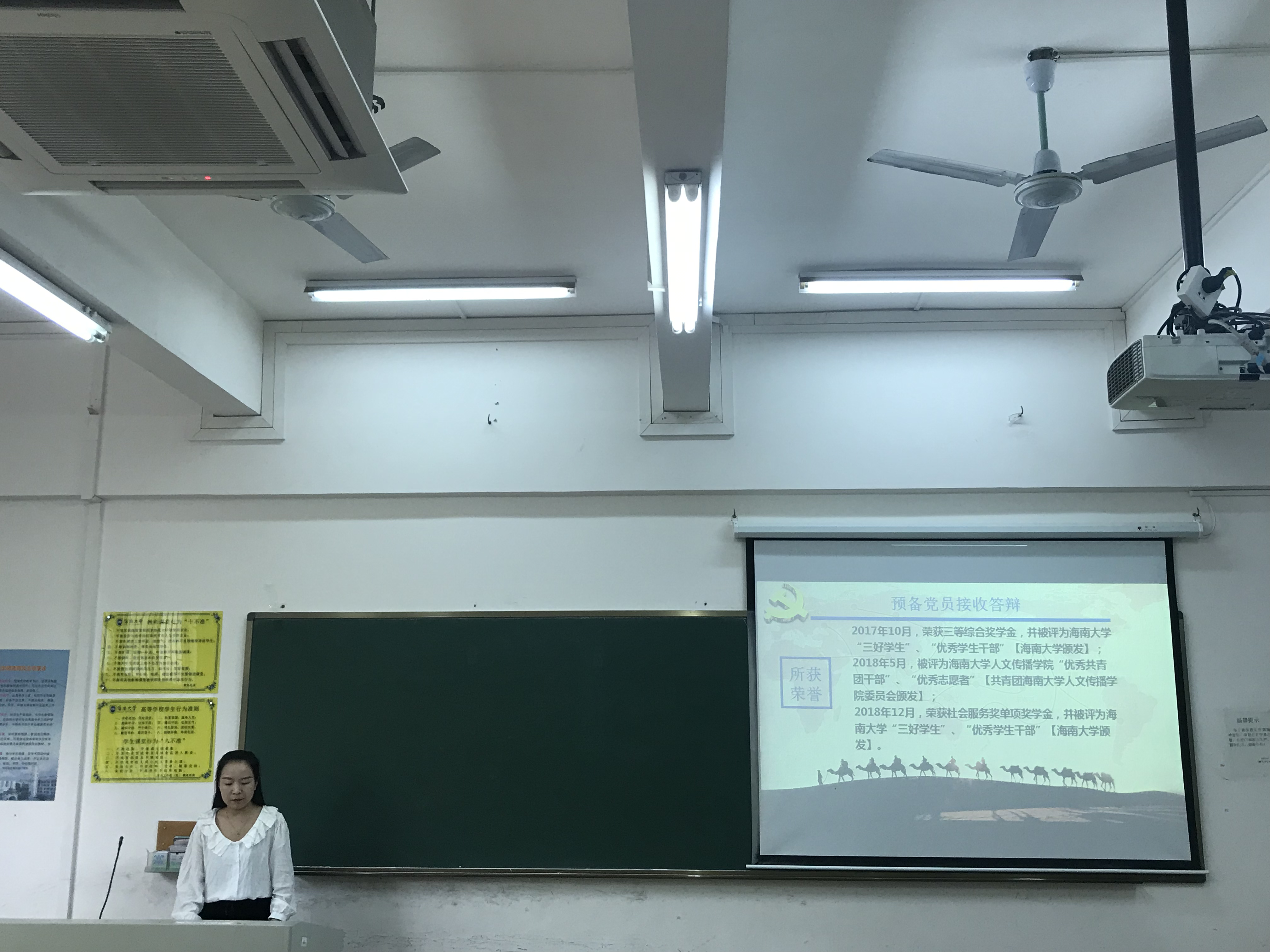 会议开始,首先由王嘉南老师发言,阐述了党员发展严格、规范的重要性,在新一批发展对象的身上,她寄予了厚望。答辩大会分为个人陈述、现场提问和无记名投票表决三个部分。