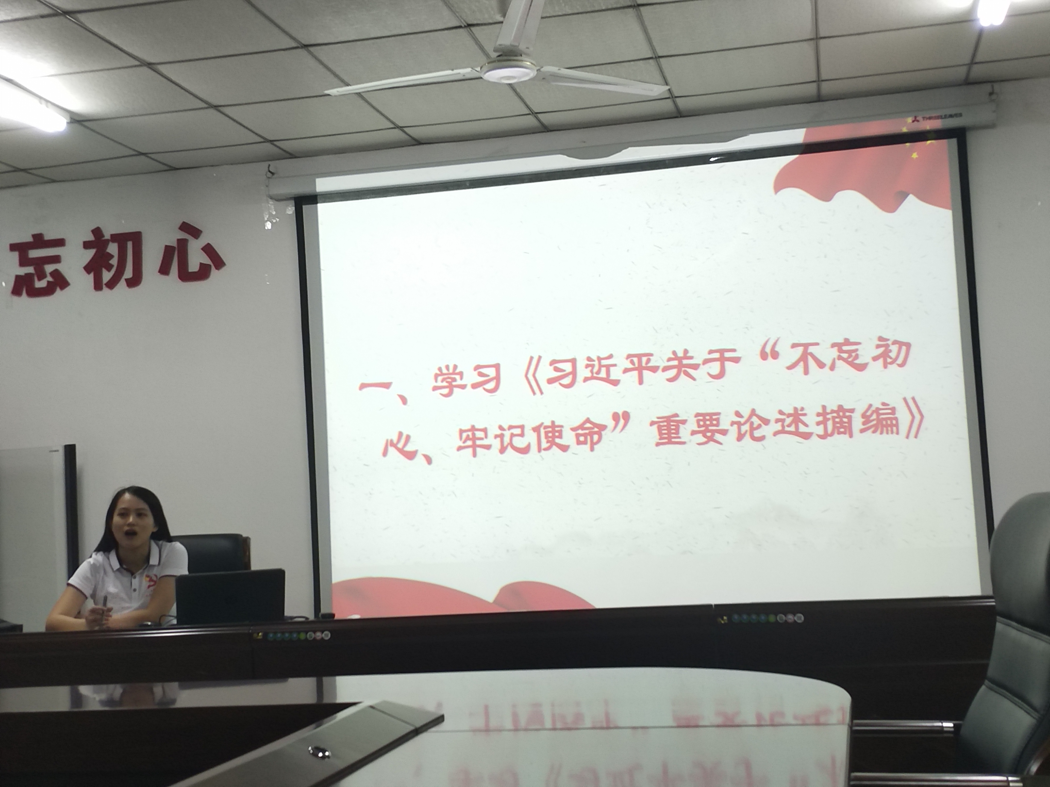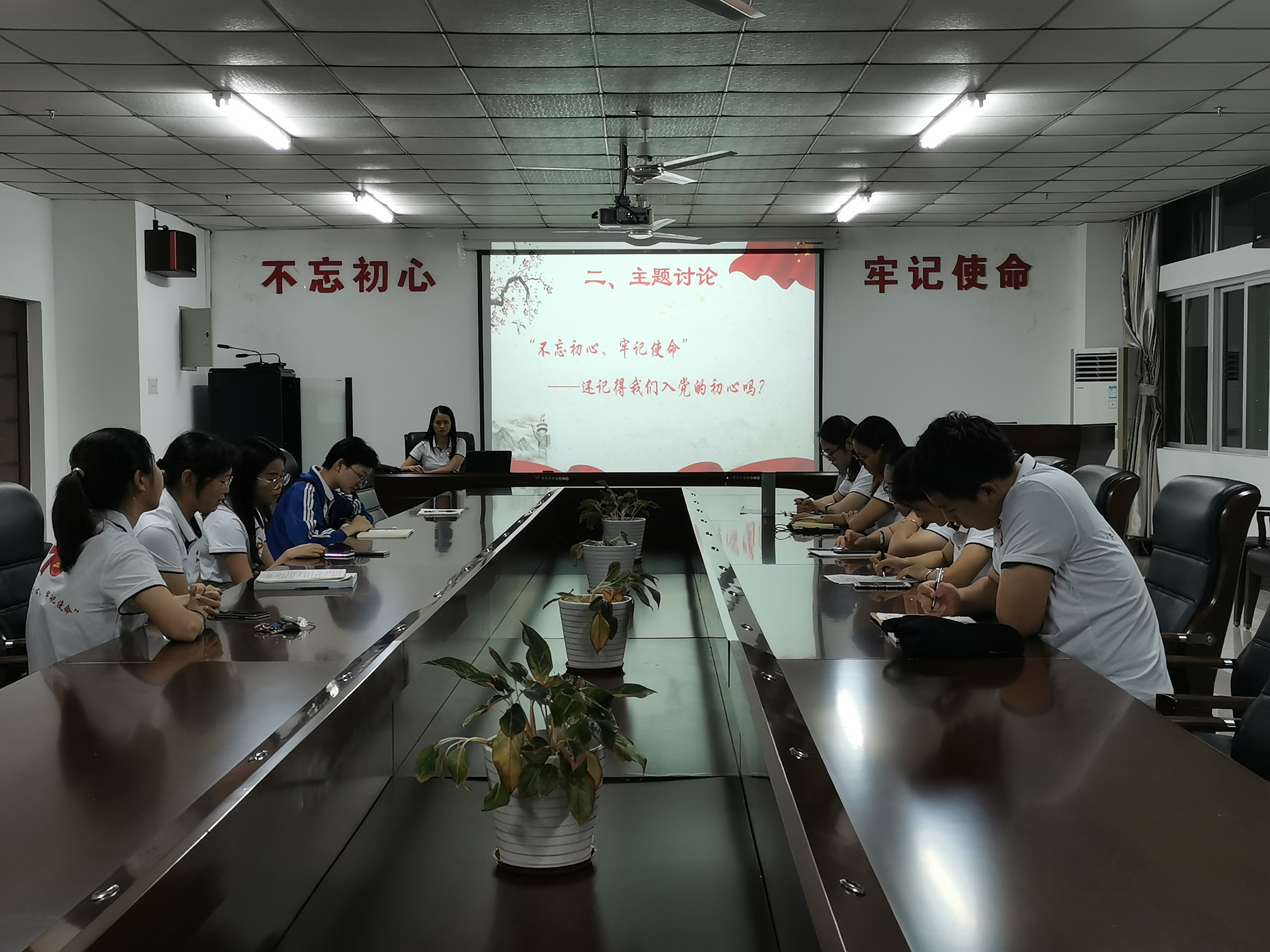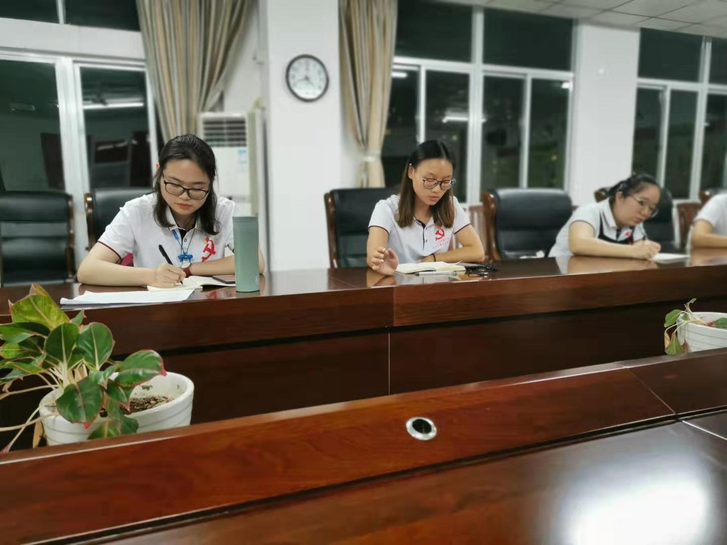 观影活动结束后,党员们都非常激动地表示要不忘初心、牢记使命,将爱国热情转化为实际行动。随后,党员们前往海南大学社科楼B719,召开了“不忘初心、牢记使命”主题教育会。会议首先集体学习了《习近平关于“不忘初心、牢记使命”论述摘编》中的“习近平于2015年7月1日给国测一大队老队员老党员的回信”和“习近平在2016年7月1日在庆祝中国共产党成立九十五周年大会上的讲话”。随后,开展了“不忘初心、牢记使命——还记得我们入党的初心吗?”主题讨论。每位党员都积极发言,党员们纷纷表示要将时不我待的责任感和使命感转化到实际学习和工作中来,不忘初心、牢记使命,立足本职,砥砺前行,从小事做起。