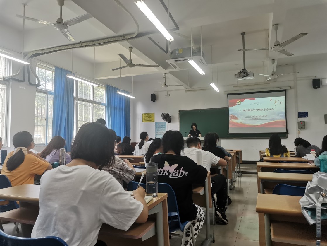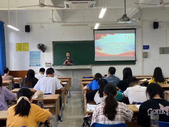 海南大学人文传播学院中文学生党支部于4月28日下午,在五教105召开“奋斗百年路 启航新征程”理论学习及读书交流会。本次会议由支部副书记高闻同志主持,全体党员同志参与。