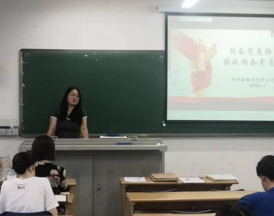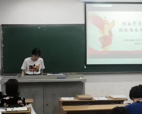 大会第二项,讨论是否接收居冲、孙颖、易婷等13名发展对象为预备党员的问题。会议严格按照党组织接收预备党员程序,首先由发展对象汇报个人情况,随后入党介绍人马馨晨、赵一丹介绍培养考察情况,然后由全体党员讨论并发表意见,投票表决接收预备党员,最后通过统计票数宣读大会决议。大会认为,13名同志基本符合党员条件,一致同意接收居冲、孙颖、易婷等13名同志为中共预备党员。