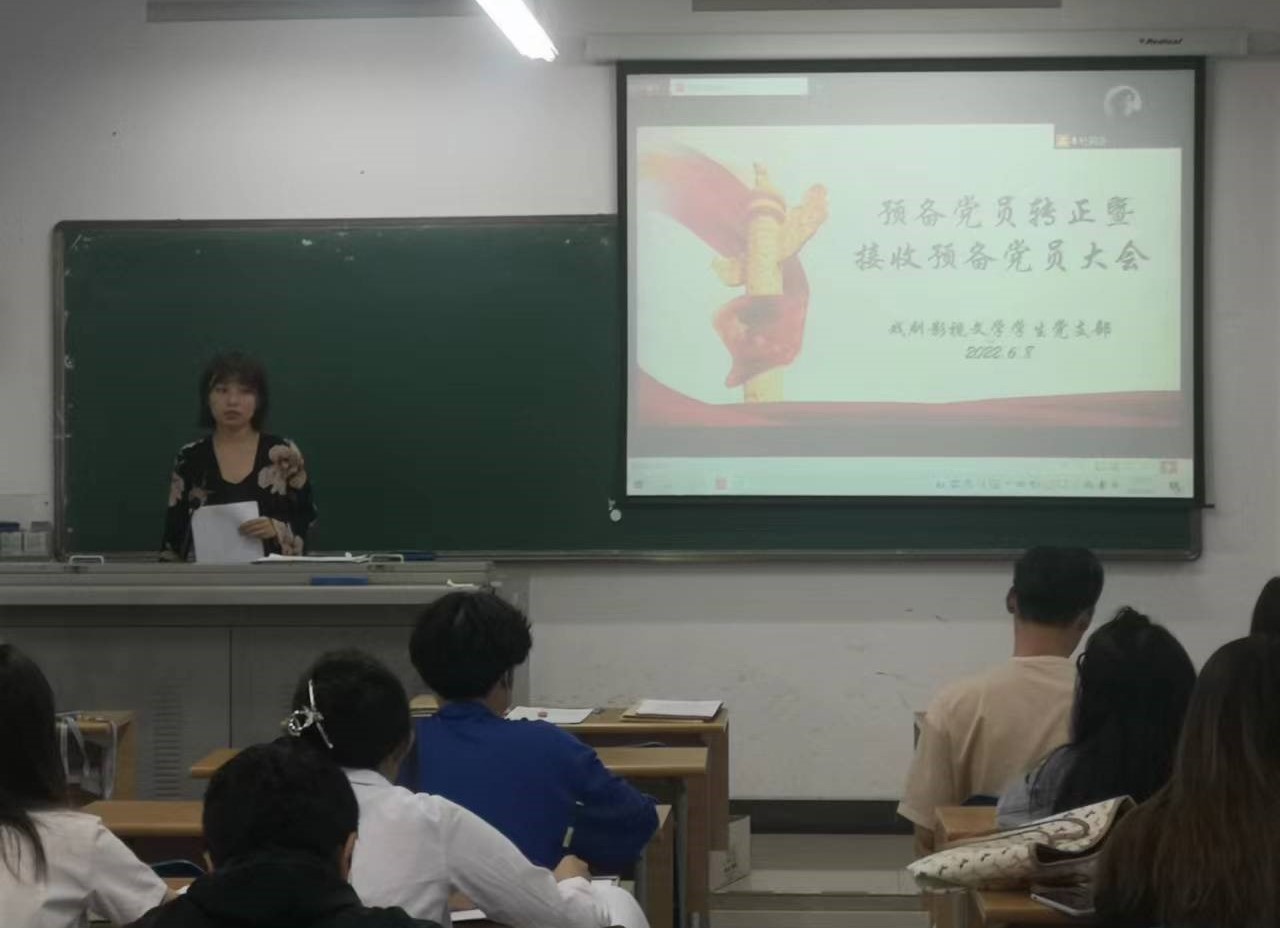 戏剧影视文学学生党支部于5教105教室召开支部预备党员转正暨接收预备党员大会。大会由支部书记宋鸽主持、组织委员杜玥含记录,参会人员有戏剧影视文学学生党支部全体正式党员、预备党员。