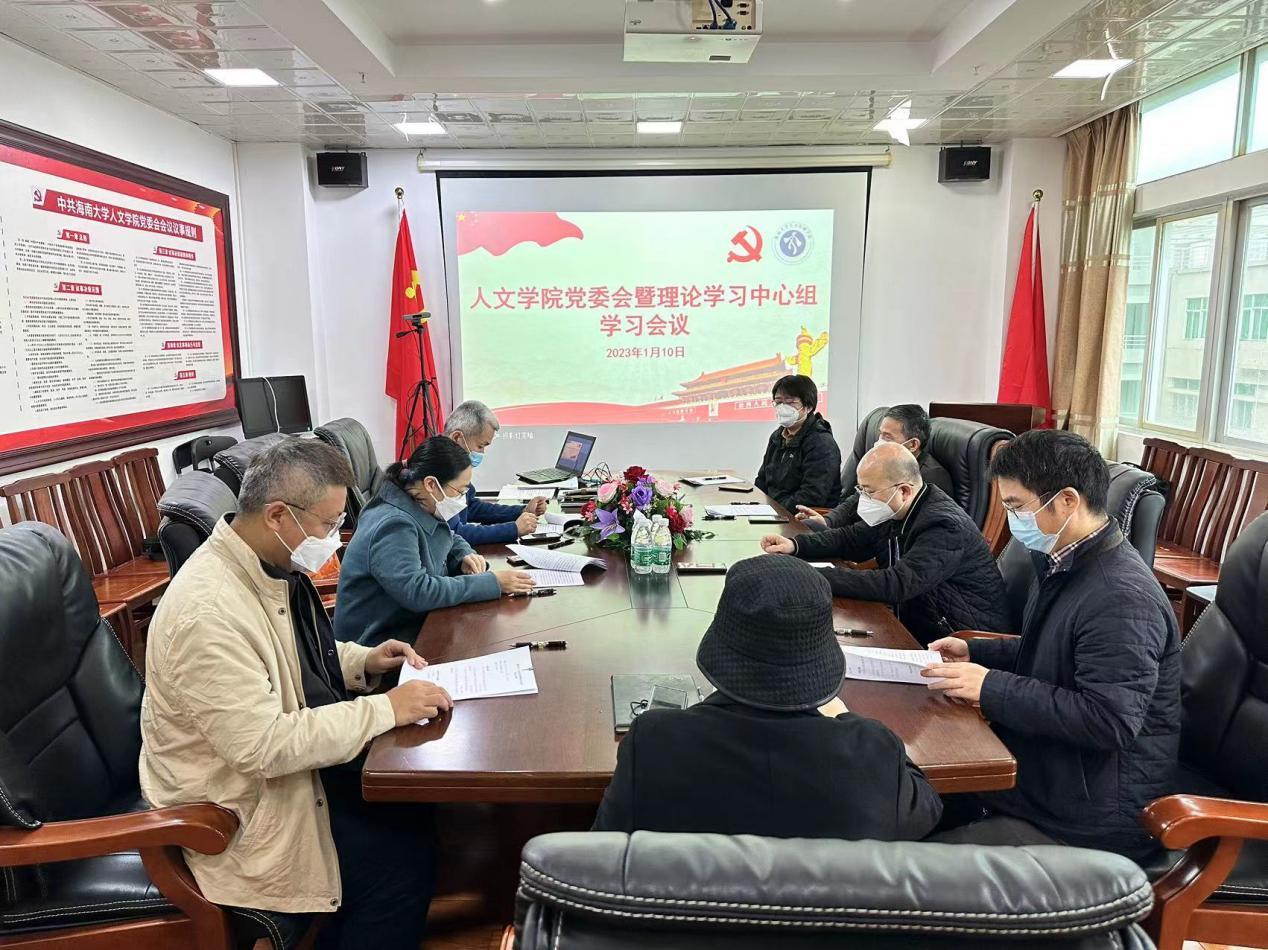 党委在社科楼B615会议室召开党委理论学习中心组2023年第1次集体学习暨学院党委领导班子民主生活会专题学习研讨,深入学习贯彻党的二十大精神、习近平总书记关于教育和海南发展重要讲话指示批示精神、省第八次党代会精神,以及《中国共产党章程》,进一步统一思想、深化认识,为开好领导班子民主生活会做足前期准备、打下坚实基础。学院党委委员、院领导参加会议,会议由党委书记邱华祥主持。