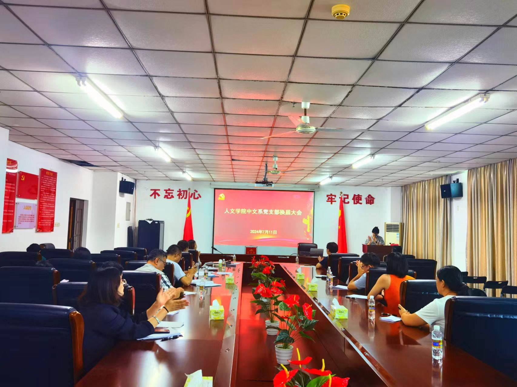 中文系党支部于社科楼B719会议室召开党员大会,进行换届选举。会议由黄一丹同志主持,中文系全体党员参加会议。
