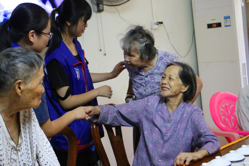 虽然大雨如注,天气条件并不理想,但志愿者们志愿服务的热情始终高涨。到达活动地点后,在带队人员分配任务之后,志愿者们分成三组分别负责相应楼层,志愿活动有序进行。许多老人对志愿者的到来表现出欢迎与喜悦,有老人拉着志愿者主动与志愿者交谈,志愿者为老人捶背揉肩、陪同老人说话,并给老人喂水,志愿者幽默诙谐的话语常能使老人开怀大笑。活动期间,在护工的指导下,志愿者帮助打扫了护理院的卫生,为老人创造干净、舒适的生活环境。最后,在志愿者与老人们惜别后,本期敬老爱老活动圆满结束。