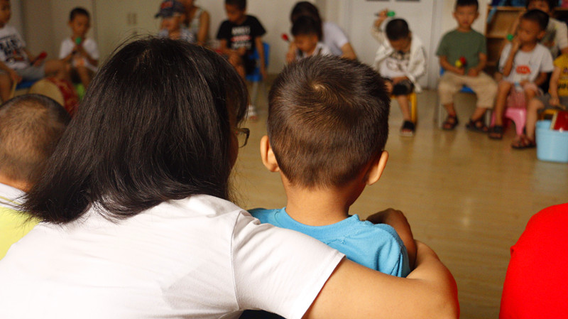 实践队员帮助自闭症儿童学习