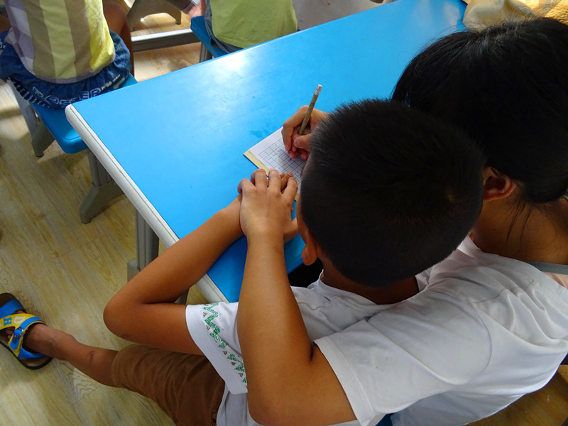 2018年7月16日, 海南大学人文传播学院“守护者”暑期社会实践团队在海口天翼特教培训学校开展对自闭症儿童的关爱教育活动。团队成员积极配合特教教师工作,活动按计划有条不紊地开展。