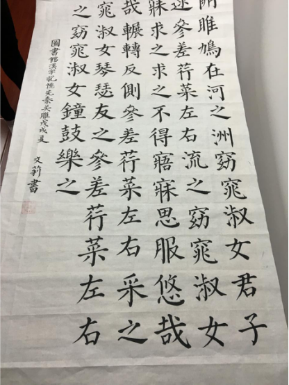 “平时上班根本没有时间和精力静下心去描摹一幅作品,也只有在周末的时候能抽空来省图学习。”一位正在选择抄写书目的读者说道。在汉字记忆工作区,团队成员积极引导和鼓励读者抄写《唐诗三百首》、《千家诗》、《古文观止》等经典,团队成员和读者们静下心来认真临摹,用笔墨记录经典,留下了许多散发着墨香的优秀作品。