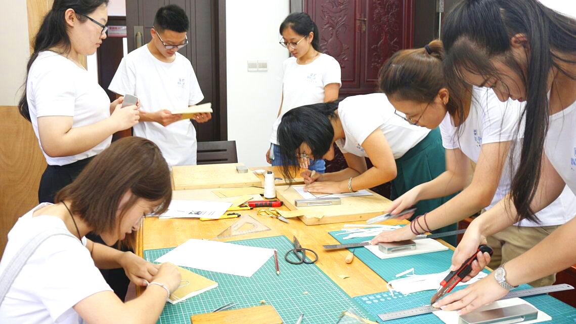 团队成员进行线装书的制作