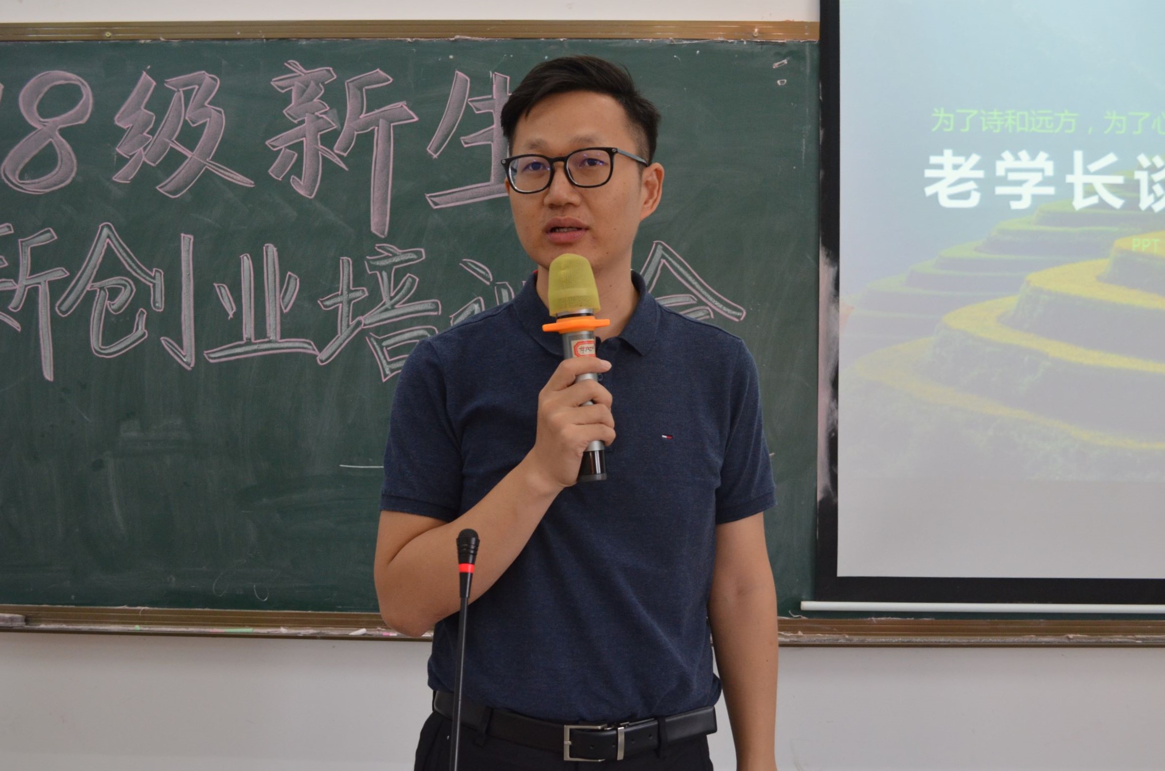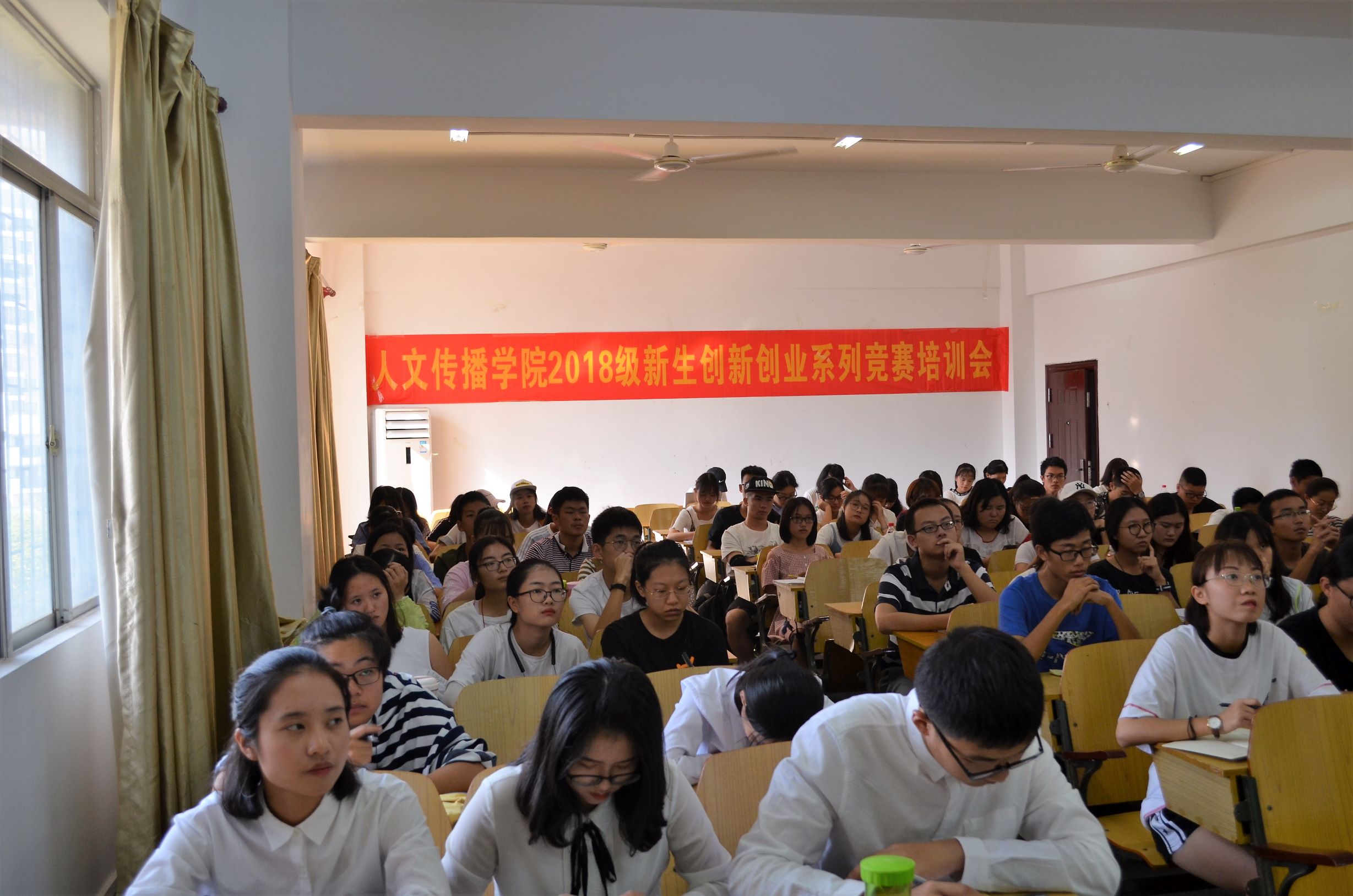 为进一步深化同学们对创新创业竞赛内容的了解,给参赛的新生同学提供更加具体的指导,2018年10月28日下午3时,人文传播学院团委创新创业部组织筹备的2018级新生创新创业培训会于城西校区教学楼4A05教室顺利召开。人文传播学院新闻传播学系副主任朱杰老师与学院创新创业导师曹银桥老师出席此次会议。18级新生创新创业大赛参赛选手参加会议。