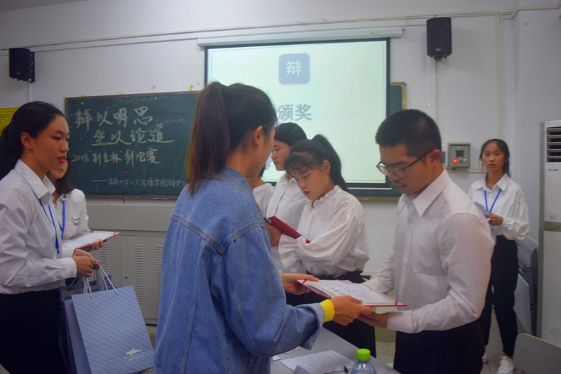大赛继续进行,进入自由辩论环节。其中,反方三辩凭借清晰的思路、犀利的言辞和准确的把握节奏给观众留下了深刻的印象。她形象地将教育发展比作修建楼房,如果房子的地基不稳,那么就算再加宽加高也是没用的。继短暂而精彩的观众提问环节后,比赛进入总结陈词环节。比赛结束,评委商讨结果。最终,反方获得2018年人文传播学院“新生杯”辩论赛决赛冠军,反方三辩陈宇佳同学获得最佳辩手。