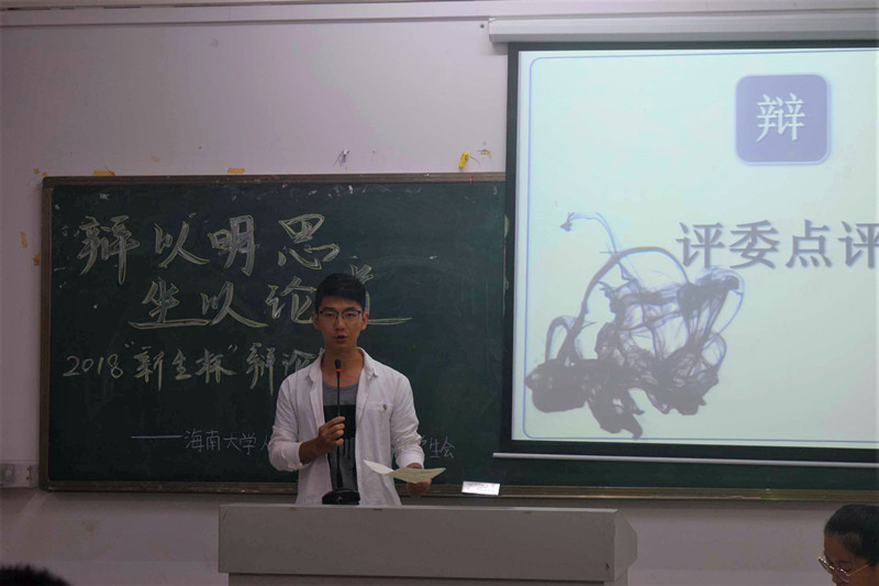 16级辩论队教练阮人及、17级辩论队队长王颖、17级辩论队副队长童博轩担任评委。海南大学人文传播学院主席蒋正一,副主席唐雨婷、陈子君、黄朝恺出席本次辩论赛。