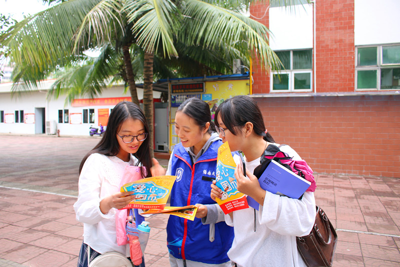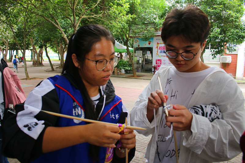 据悉,该活动分别于11月20日、21日在海南大学海甸校区椰林小道开展,于11月22日、24日在城西校区大榕树下开展。活动过程中,海大材化青协和海大人文青协的志愿者将毛线与织针分发给前来报名的同学,并协助进行报名信息登记,志愿者耐心地进行编织教学并负责解惑答疑,由参与活动的同学们编织成围巾后进行统一回收,捐赠给西部贫困山区的儿童们,在冬日里送上来自海南大学学子温暖的关爱。