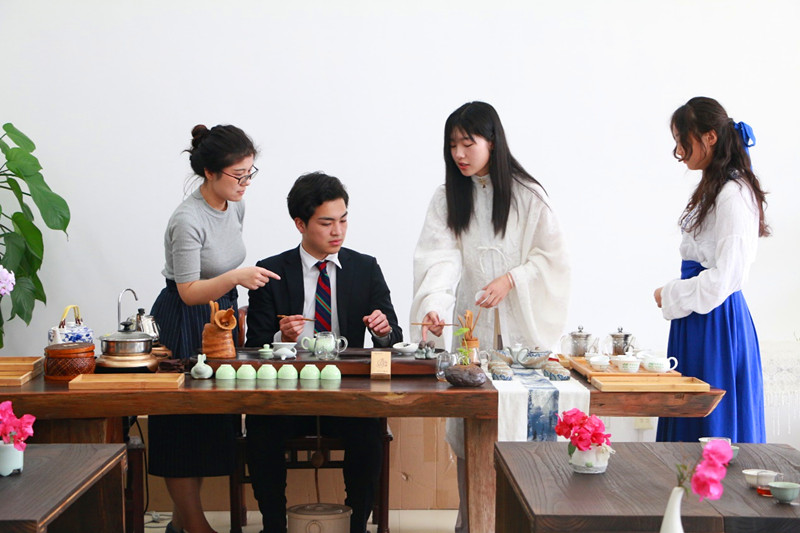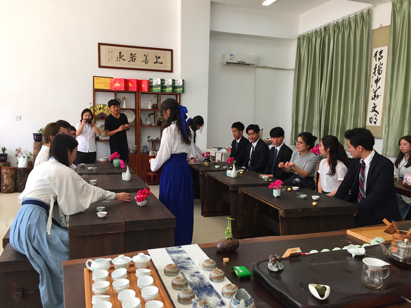 在双方交流活动中,孙晓媛副书记首先代表国学社表达了对远道而来日本友人的热烈欢迎,并介绍了海南大学国学社和中国茶文化,孙晓媛副书记希望双方同学在茶艺欣赏和对话交流中能彼此加深对中日文化差异的理解和认知,增进中日青年学生友谊。李小北副院长介绍了日本交流团学员的情况,并向早稻田大学的学生译介中国茶艺文化。交流活动中,海南大学国学社社员向早稻田大学的同学展示了中国茶艺,海大学子与早稻田大学学生围绕中日文化交流、海外学习实践、大学生就业、社团文化等话题展开深入交流,感受异国文化意趣。在国学社社员的指导下,几位日本友人还愉快的体验了一下中国茶艺。