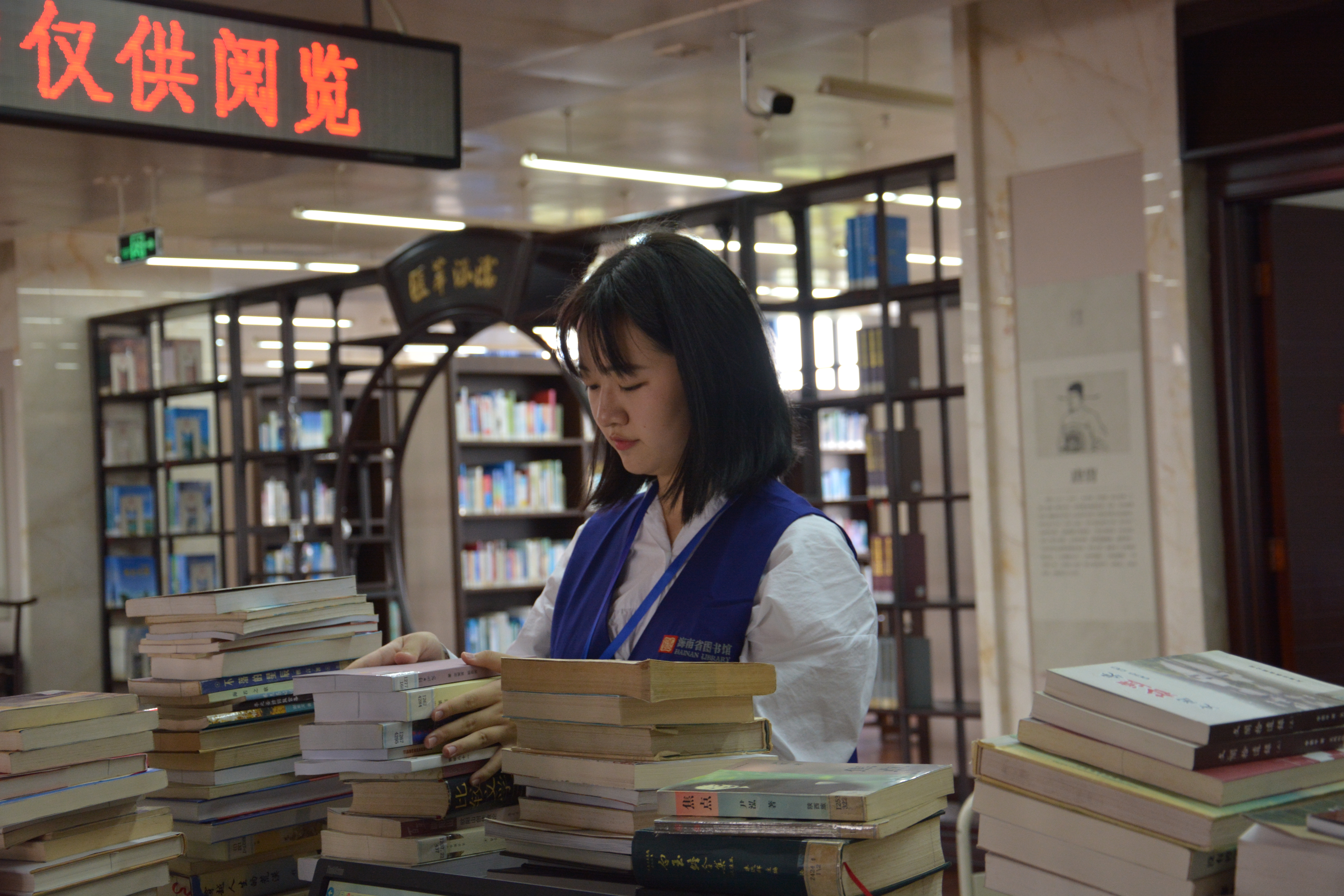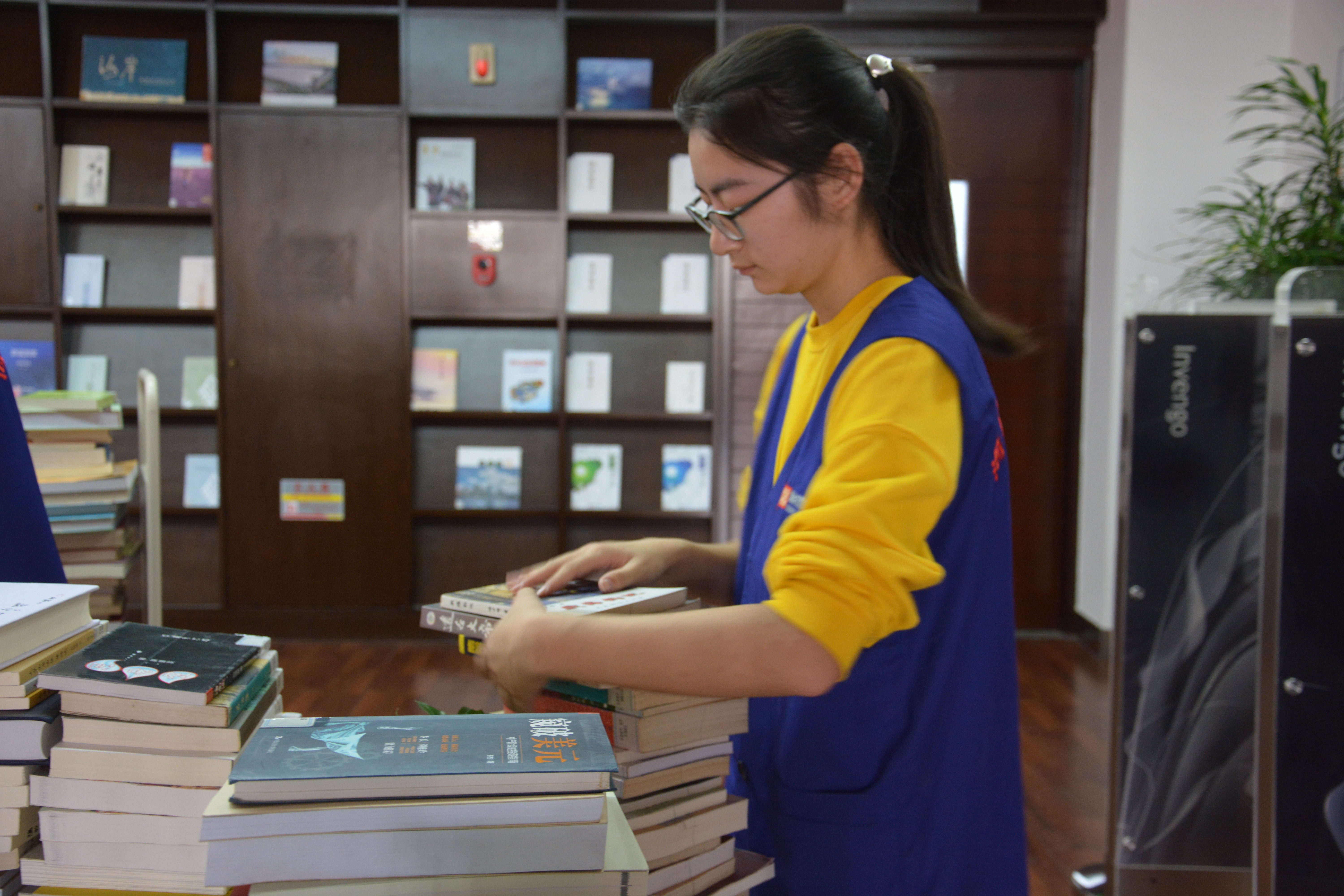 志愿者整理图书